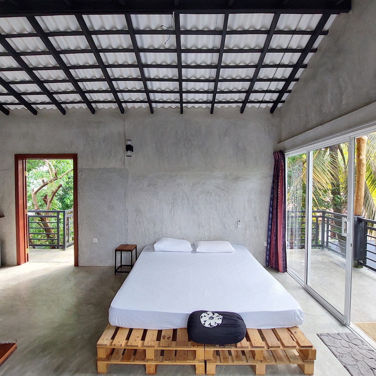 A uniquely designed and styled jungle bungalow with a mezzanine bedroom, one bathroom and kitchen. It is inspired by the tiny house concept. Outside space includes private plunge pool & BBQ. Soak up the tranquility of nature whilst being just a 5 min walk to the Indian Ocean and some of Sri Lanka’s famed beaches and surf spots, including Kabalana beach. Our philosophy is simple: To provide a private, restful and inspiring space while sharing our love of design and nature.