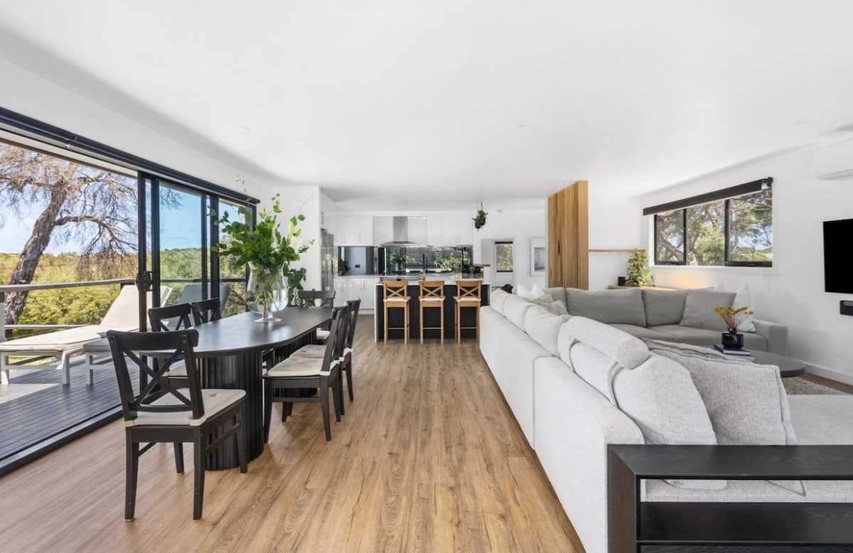 Disfruta de tu propio oasis de estilo hotel de lujo, situado en una manzana elevada con vistas panorámicas a Arthur's Seat a través de ventanas de vidrio del suelo al techo. Ubicado dentro de hermosos jardines, con nativos australianos. Esta propiedad privada ofrece un excelente lugar para que las parejas se escapen a poco más de una hora en coche de la ciudad. La bahía está a 800 metros a pie. A cinco minutos de Peninsula Hot Springs. Gran acceso a la región vinícola de Red Hill y a toda la península, que ofrece relajación y descanso.