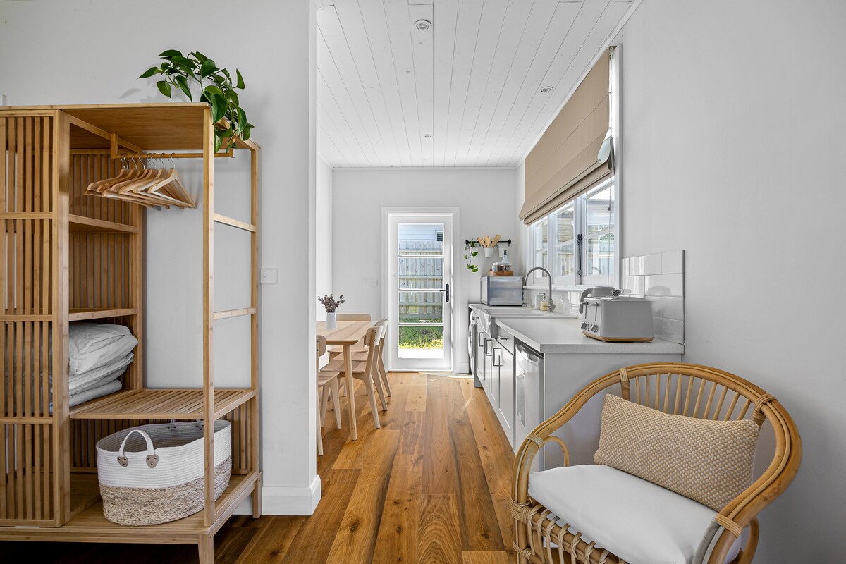 *NUEVO ANUNCIO* Ubicada en una ubicación tranquila y privilegiada, en el corazón de Rye. Ropa de cama incluida. La cabaña Blue Beach es una casa de huéspedes en la playa renovada que cuenta con un dormitorio de estilo estudio de planta abierta, con una cocina/comedor independiente y un baño independiente. Esta encantadora propiedad es luminosa y espaciosa, acogedora y cómoda, ¡perfecta para una escapada en pareja o una familia con un bebé o un niño pequeño! En una ubicación privilegiada en Rye con fácil acceso a la playa, tiendas y aguas termales. Es un entorno muy tranquilo.
