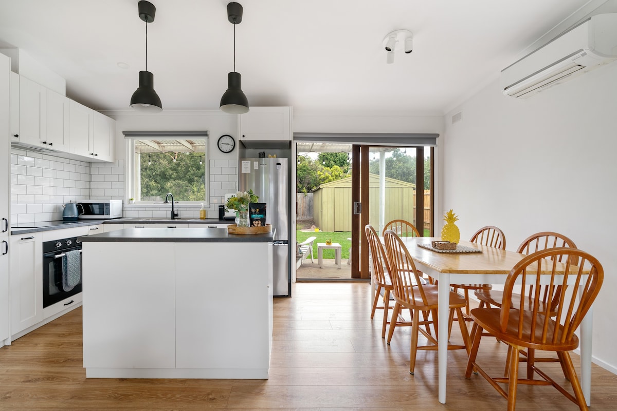 * Ahorra mucho: 20% de descuento para las vacaciones escolares victorianas * Esta casa de playa bellamente decorada y bien equipada en Rye, Victoria es la escapada perfecta para aquellos que buscan estilo y conveniencia. Disfruta de los impresionantes alrededores de los árboles Moonah desde la espaciosa terraza privada, perfecta para una barbacoa o tomar el sol. Situada en el corazón de la península de Mornington, esta casa de playa está a pocos minutos de Peninsula Springs, bodegas, campos de golf, cafeterías y playas junto a la bahía y detrás de la playa.