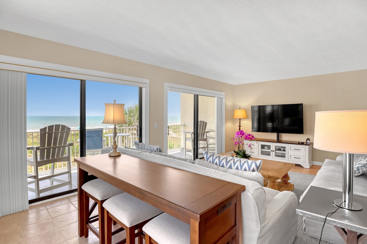 Disfruta de las vistas panorámicas al mar desde el balcón privado de este apartamento en segunda planta frente a la playa. * Acceso privado a la playa desde el patio trasero. * Balcón frente al mar con cómodos asientos. * Cómoda ubicación en el centro de Cocoa Beach. * Dormitorio con cama tamaño king. * Cocina completa con electrodomésticos de acero inoxidable. * 2 televisores inteligentes con cable. * Wifi gratuito. * Plaza de aparcamiento asignada gratuita. * Baño completo * Lavadora y secadora en el alojamiento * Sofá plegable de tamaño completo * Equipo de playa y toallas * Artículos de aseo, café y té de cortesía