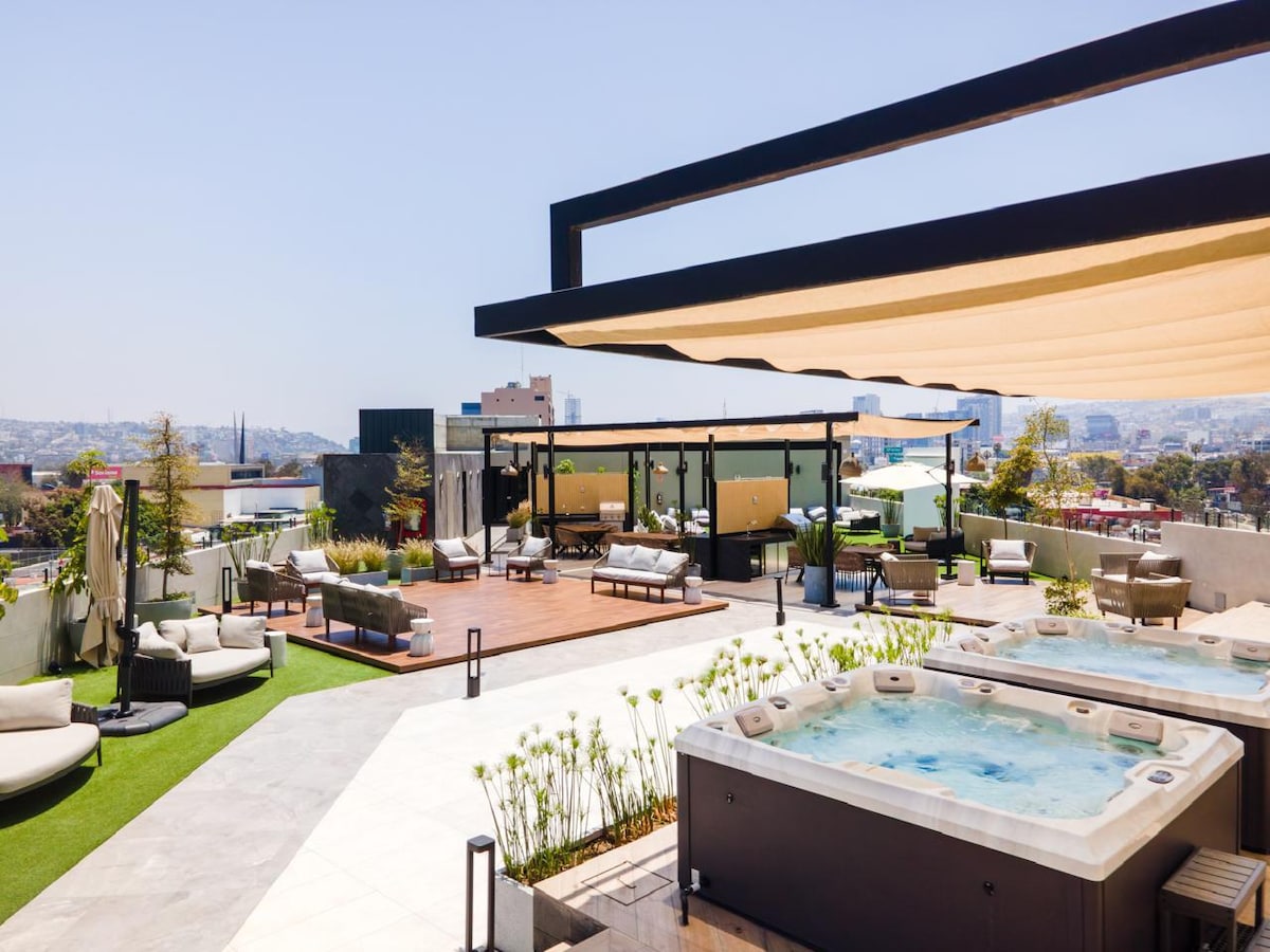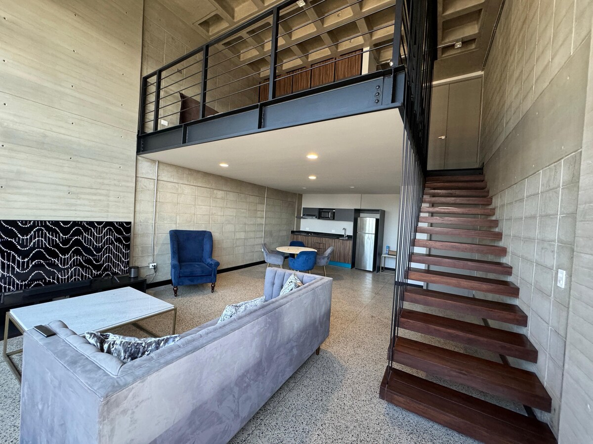 Elegante loft con paredes de concreto, vigas de acero y acabados de madera y un ambiente botánico pintando un estilo fresco e industrial. En la recámara disfruta de una vista enorme de la calle más histórica de Tijuana. Sube a la azotea para disfrutar de un concierto y vistas de las calles junto a una fogata. Seguridad 24/7 y acceso solo con tarjeta. Experimenta la ubicación más céntrica de Tijuana donde clínicas, supermercados, bares, restaurantes y cafés a menos de 5 minutos a pie.