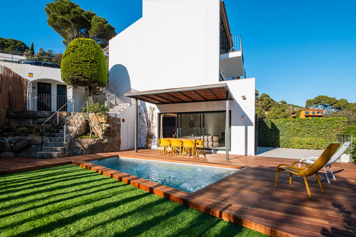 Casa costera renovada en 2023 en Sa Riera, Begur, con impresionantes vistas al mar desde sus tres niveles. A solo 5 min a pie de la playa, ofrece 3 dormitorios, 3 baños, piscina privada, amplias terrazas y 2 parkings. Cocina moderna, aire acondicionado y jardín con postes para hamacas. Ubicada en una calle tranquila pero cerca de restaurantes, rutas escénicas y el encanto de Begur. Una combinación ideal de lujo, confort y belleza mediterránea.