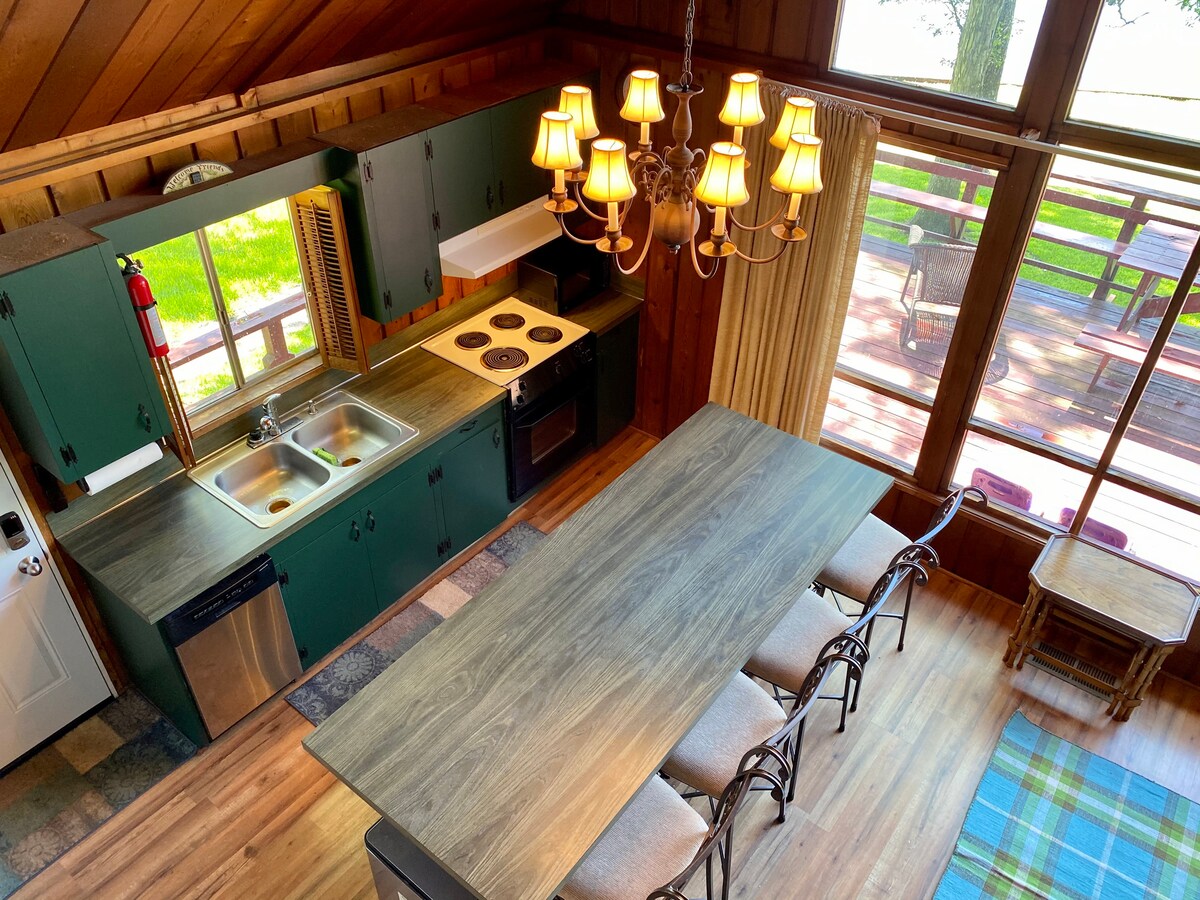 Cabaña acogedora recientemente renovada en Mid-Lake; capacidad para 10 personas