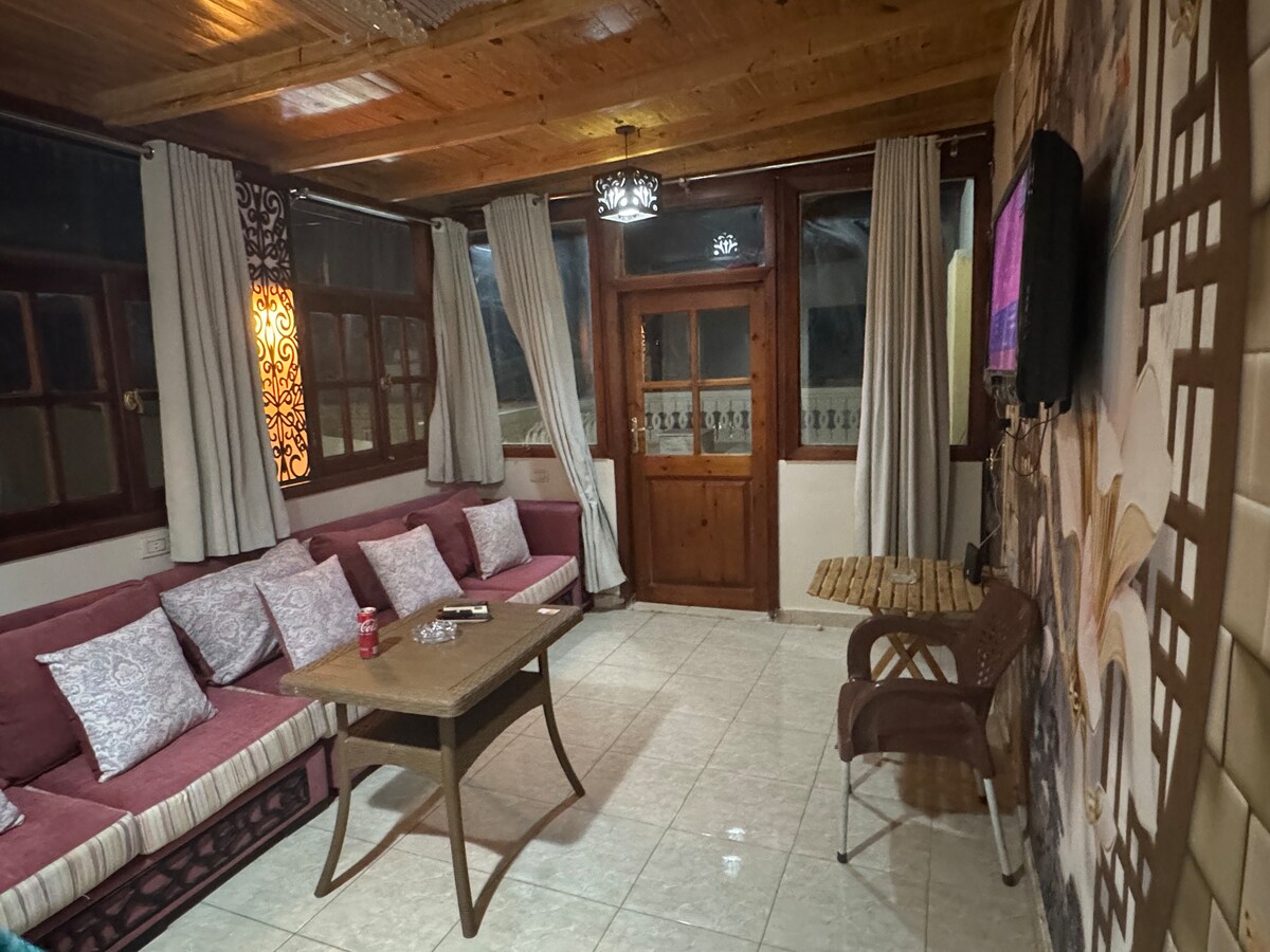 Disfruta de una estancia tranquila en la azotea en el corazón de Safaga con impresionantes vistas al mar y amaneceres mágicos. Este luminoso apartamento de dos dormitorios (1 cama tamaño «king», 3 camas individuales) es ideal para familias o grupos. Relájate en la terraza privada y siente la fresca brisa marina. La ubicación es perfecta, a solo unos pasos de restaurantes, cafeterías, panaderías, supermercados, centros de buceo y deportes acuáticos. Tanto si estás aquí para explorar el mar Rojo como si simplemente quieres relajarte, esta azotea te ofrece la comodidad y la calma que necesitas.