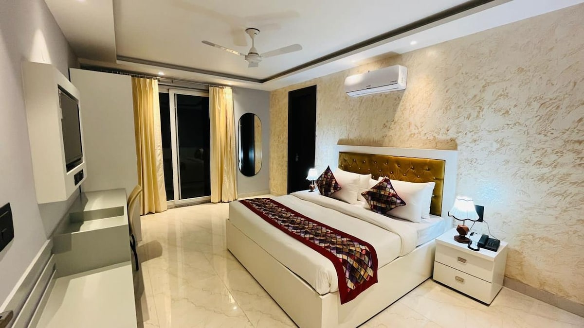 Apartamento de servicio premium 1BHK en el sector 43, Gurgaon con aire acondicionado en el salón y el dormitorio, además de una cocina con inducción, microondas y cubiertos. En una zona elegante, a poca distancia del centro comercial Gold Souk y de la escuela Shalom Hills, a 2,2 km de la estación de metro Millennium City Centre y a 2,1 km del hospital Fortis. Los huéspedes extranjeros son bienvenidos. El registro de entrada anticipado estará sujeto a disponibilidad y tendrá un cargo de 500 rupias, así como el registro de salida después de la hora establecida, que también tendrá un cargo de 500 rupias por cada 3 horas posteriores.