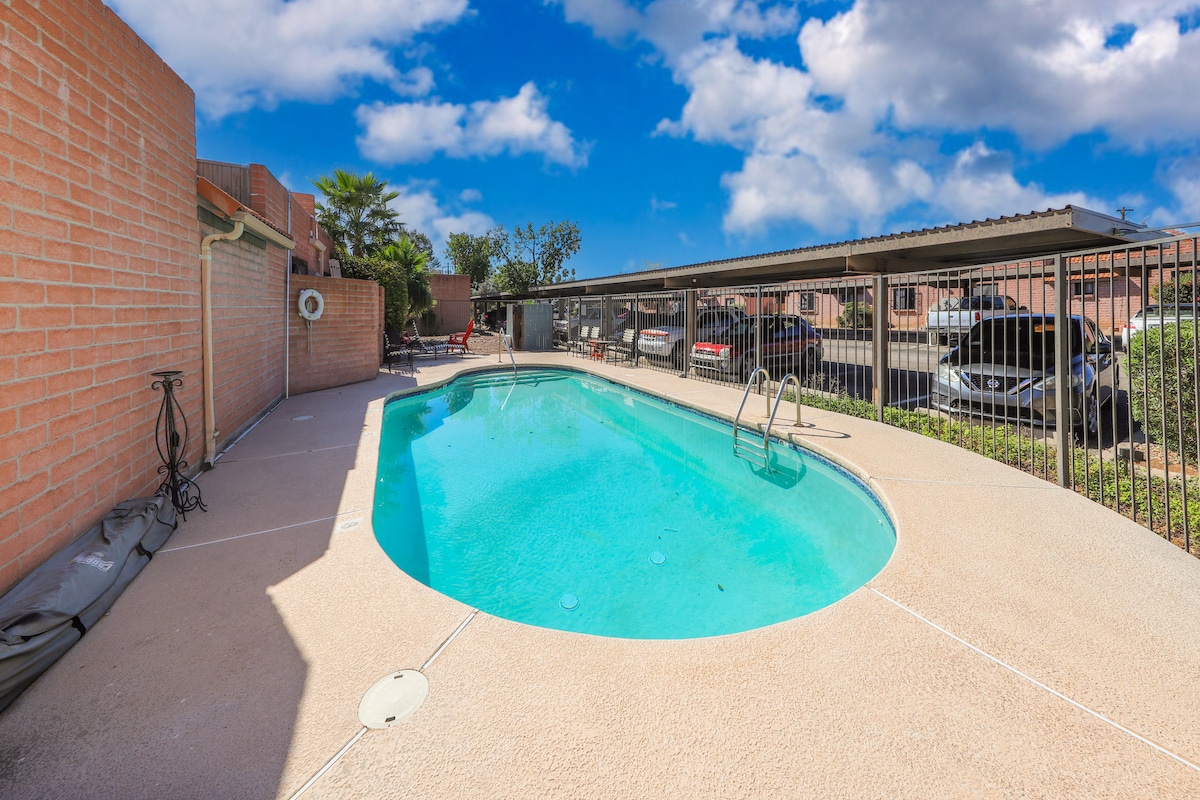 Suite ✓ principal con vestidor ✓ Cocina totalmente equipada y abastecida ✓ Cochera para un auto Piscina ✓ comunitaria (sin calefacción) Complejo ✓ tranquilo 5 min → Udall Park 18 min → U de A 30 min → Mt Lemmon DEPÓSITO DE SEGURIDAD O EXENCIÓN DE DAÑOS: para preservar el estado de nuestra propiedad, se requerirá una tarifa de exención de daños no reembolsable ($ 42.80) o un depósito de seguridad reembolsable ($ 700) después de reservar. La compra se completará a través de nuestra tarjeta de embarque de Fig & Toast y Enso Connect, un colaborador autorizado de Airbnb.