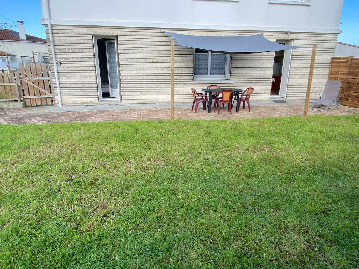El apartamento se encuentra a 1,5 km de las playas y del centro de la ciudad de St Palais y contiguo a nuestra casa. La escalera le invita a subir al 1.er piso en el alojamiento totalmente renovado con un ambiente acogedor. Consta de una luminosa sala de estar, una cocina funcional, un baño zen y un dormitorio que invita al descanso. Tendrá 1 terraza a su disposición y una plaza de aparcamiento privada. Posible opción de pago: tratamiento de masaje de bienestar o reflexología en mi instituto.
