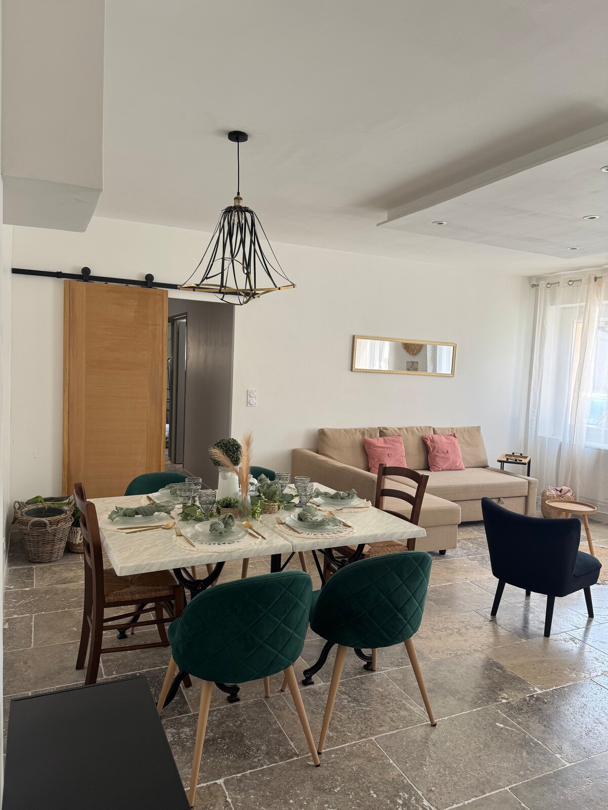 Planta baja de 90 M2 independiente de una casa. Situado a 12 minutos del aeropuerto de Saint-Exupéry, a 18 minutos del Groupama Stadium, a 22 minutos de Eurexpo, a 20 de LDLC Arena y a 25 minutos de Lyon. Llegada y salida autónoma a través de la caja de llaves, ideal para una llegada tardía o una salida por la mañana. El alojamiento es completamente nuevo, está equipado con aire acondicionado y cuenta con 3 dormitorios, una cocina equipada abierta al salón, así como una terraza.