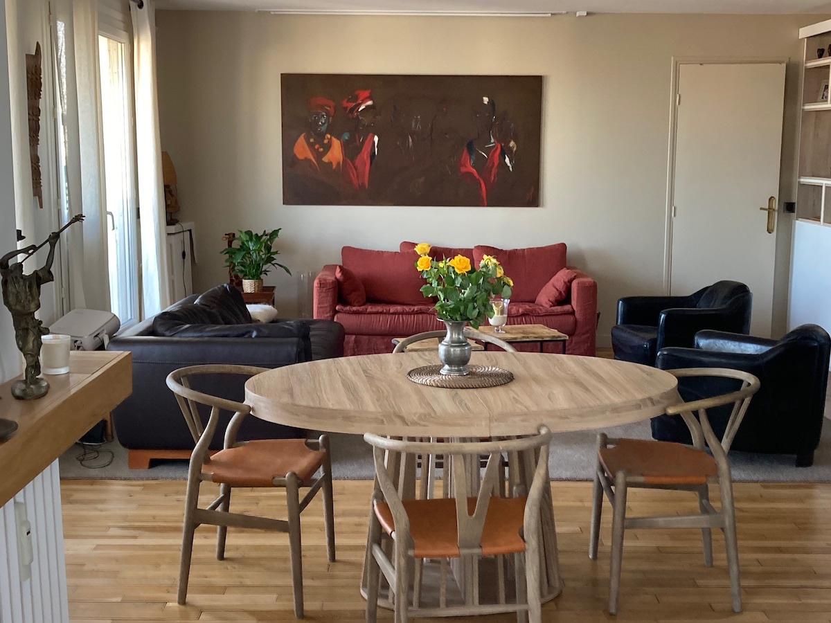 Apartamento de 65 m ² luminoso y espacioso con gran balcón. ¡Situado en el quinto piso con una vista despejada y sin vecinos ( vista de París)! Perfectamente situado entre París y Versalles. La sala de conciertos "La Scène Musicale " se encuentra a 15 minutos a pie. Nuestro apartamento está situado en el centro de la ciudad, cerca del transporte público (autobús, tren, metro), tiendas y restaurantes. Estacionamiento en el sótano. ¡Estaremos encantados de recibirle en nuestra casa!