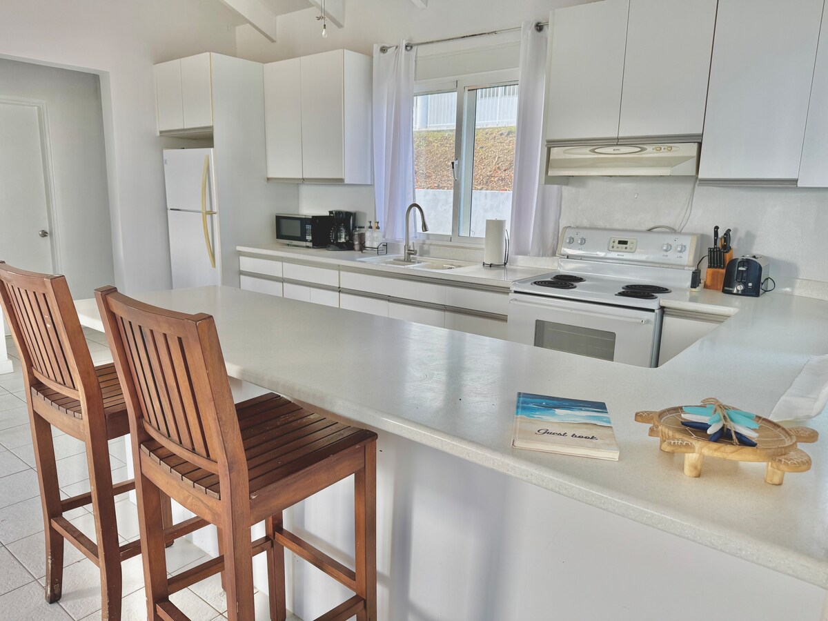 ¡Te damos la bienvenida a Villa Tortuga! Tortuga significa «tortuga» en español. Esta encantadora casa se encuentra en poco menos de un acre de exuberante paraíso tropical. Brillantes árboles flamígeros y vistas al mar te dan la bienvenida al entrar por la puerta. Esta casa privada y serena se encuentra en lo alto de una colina en un barrio bien establecido conocido como Estate Beeston Hill. Está rodeada de exuberante flora tropical con vistas al mar y a la ladera. Villa Tortuga está a solo 5 minutos del centro de Christiansted.