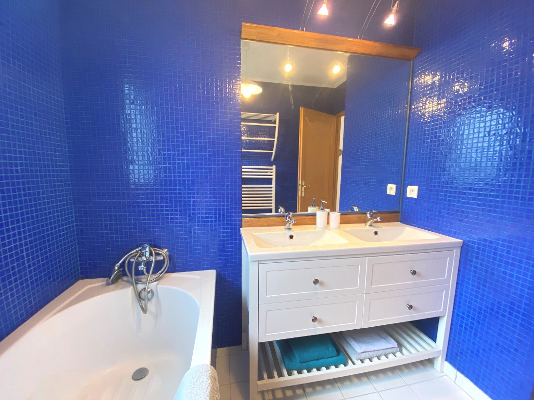 Notre villa est Idéalement placée dans un endroit calme à 800m de la plage. Elle dispose d’une terrasse de 75m2, d’une Piscine chauffée et d’un jacuzzi pour vous détendre après une visite à vélo ou en revenant des nombreuses activités nautiques autour de la maison. Piscine chauffée des vacances de Pâques aux vacances de Toussaint. Le jacuzzi est disponible toute l’année. Internet par Fibre. Toutes les pièces sont équipées de ventilateurs de plafond. 3 des 4 chambres seront fermées.