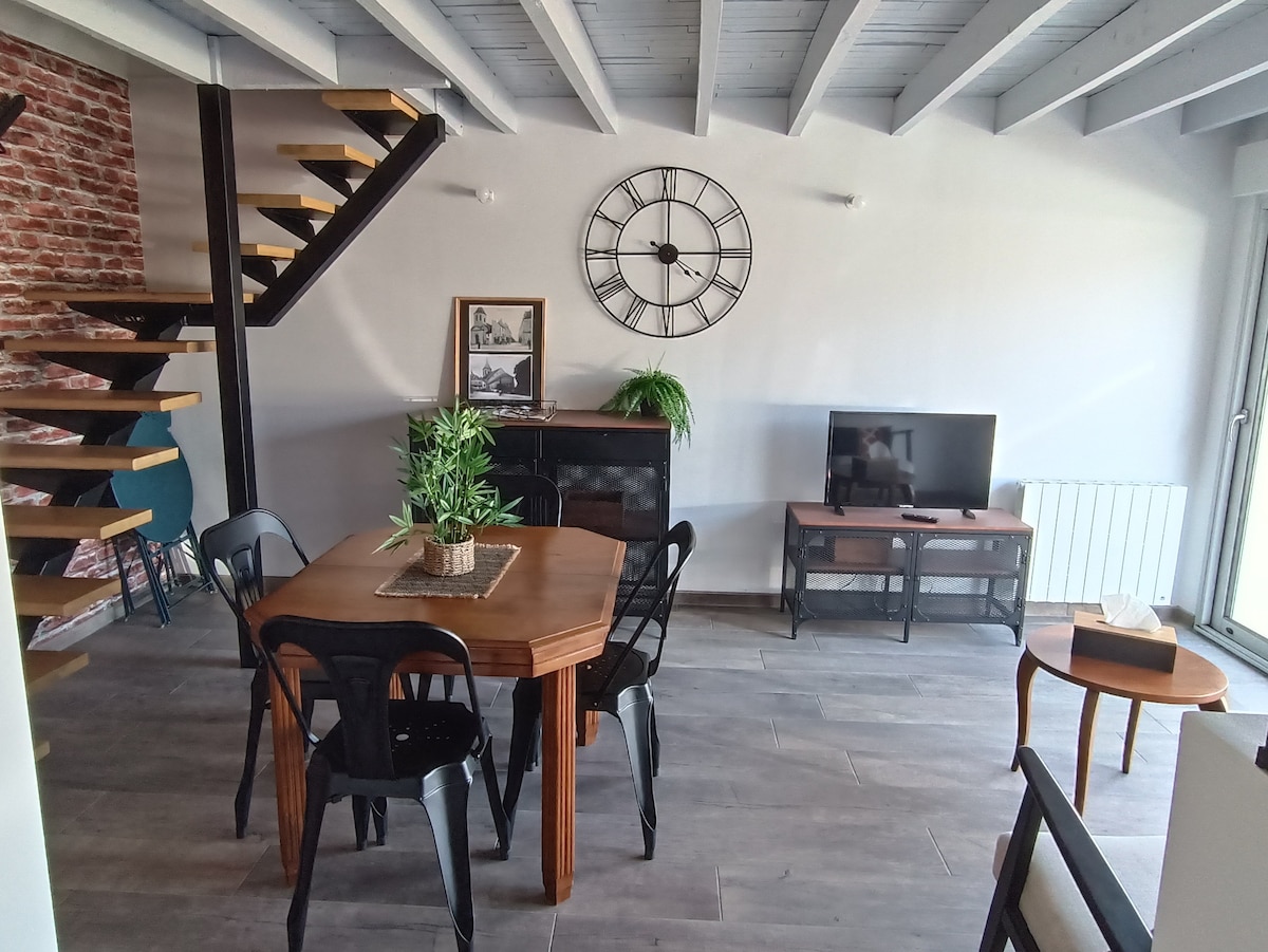 Bienvenido a nuestro apartamento cálido y cómodo, situado en un edificio de piedra de principios de 1900. A solo 5 minutos andando del centro de la ciudad, este alojamiento adosado combina el encanto de lo antiguo y la comodidad moderna. ¿Te apetece naturaleza? Está a solo 2 minutos a pie del estanque de Courtille, perfecto para un paseo o un momento de relajación. Los amantes de la bicicleta de montaña y el senderismo apreciarán la proximidad del sitio de Maupuy. La escuela secundaria también se encuentra a un minuto andando.