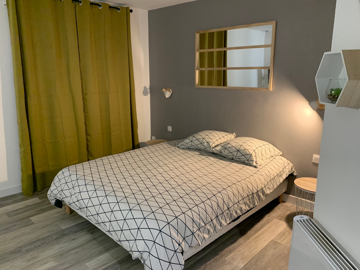 Relájese en este alojamiento acogedor y elegante. Hemos renovado este alojamiento cerca de nuestra casa, con una superficie de 40 m² con servicios de calidad, terraza y patio privado. Una sala de estar con una cocina equipada, un dormitorio con almacenamiento, un baño Equipado con fibra. Situado en el corazón de Jaunay-Marigny (pueblo de Jaunay-Clan), comercio a 2 minutos a pie, a 5 minutos del Futuroscope y la Arena Alojamiento independiente y para no fumadores No se admiten animales