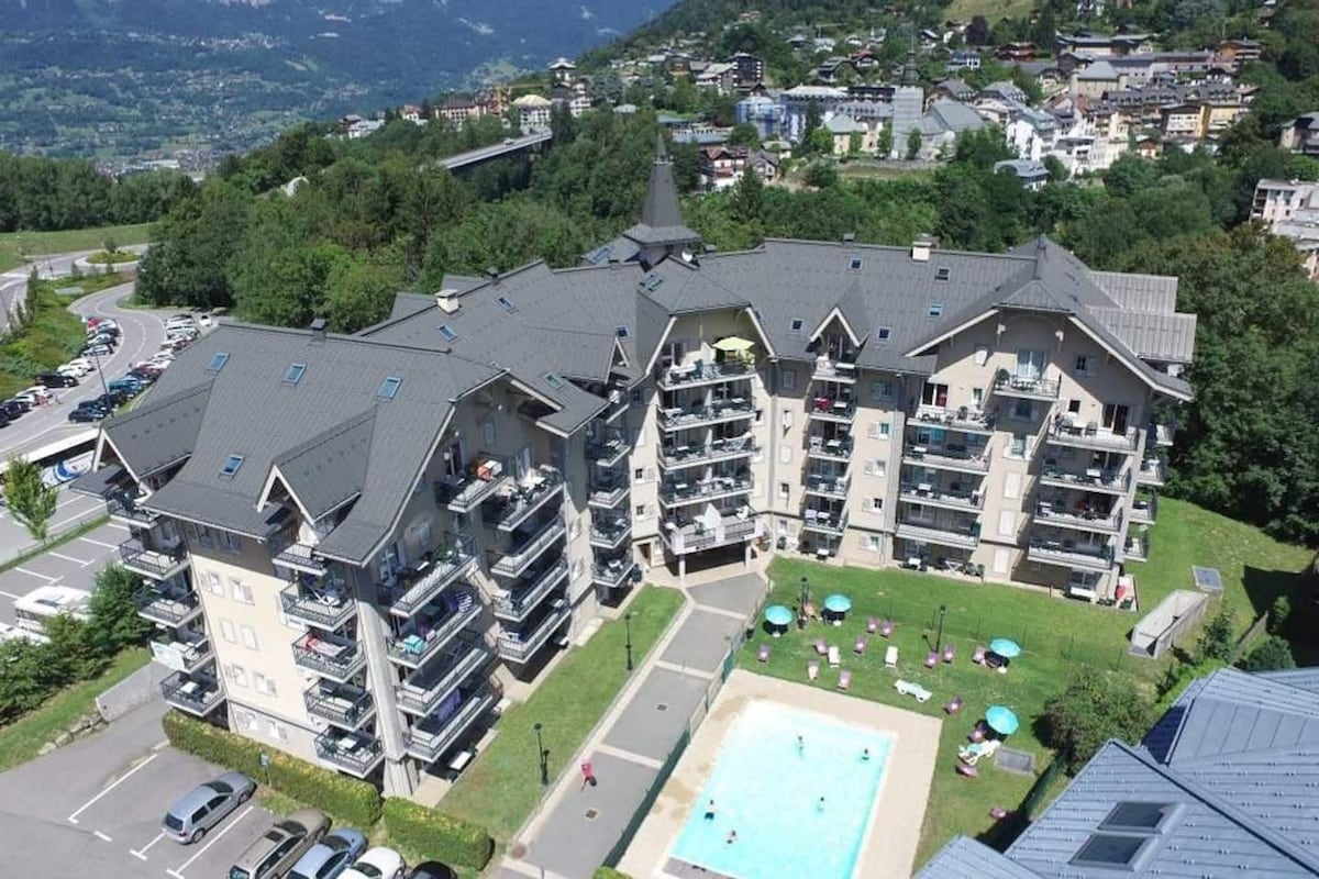 👋🏻Magnifique studio!Matériaux qualité,Belles prestations Au ❤️ de St-Gervais-les-Bains. 🧺Draps/linge✅ ⛷️Sur piste en hiver 🏊♀️Piscine chauffée l’été. 🚌navette depuis le télécabine 🚠 Centre ville: 2mn en voiture (10 à pieds) 🚗park gratuit privé 😴2 lits superposés séparés. - 🚿SDB moderne avec douche à l'italienne. -Belle pièce à vivre chic et cosy canapé convertible mémoire forme 📺smart TV/Netflix Cuisine tte équipée: lave vaisselle, four, lave linge séchant... 🏔️Balcon+table et vue magnifique Wifi