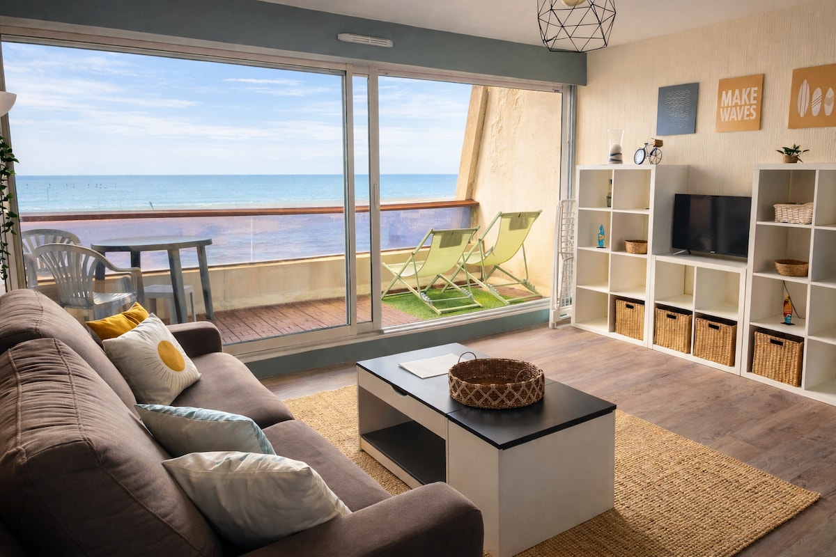 Frente al mar: disfrute de unas vistas excepcionales. Magnífico apartamento T2 (2/4 personas) renovado en 2024 - GRAN CONFORT. La playa y la duna están al lado del apartamento (sin carretera que cruzar). Impresionantes vistas al mar y a la isla de Yeu desde el comedor, la logia e incluso desde la cama de su habitación. Admire las puestas de sol en pareja, en familia o con amigos. Tiene su propio garaje cerrado; ideal para su coche y para guardar bicicletas, remolque y juegos de playa.