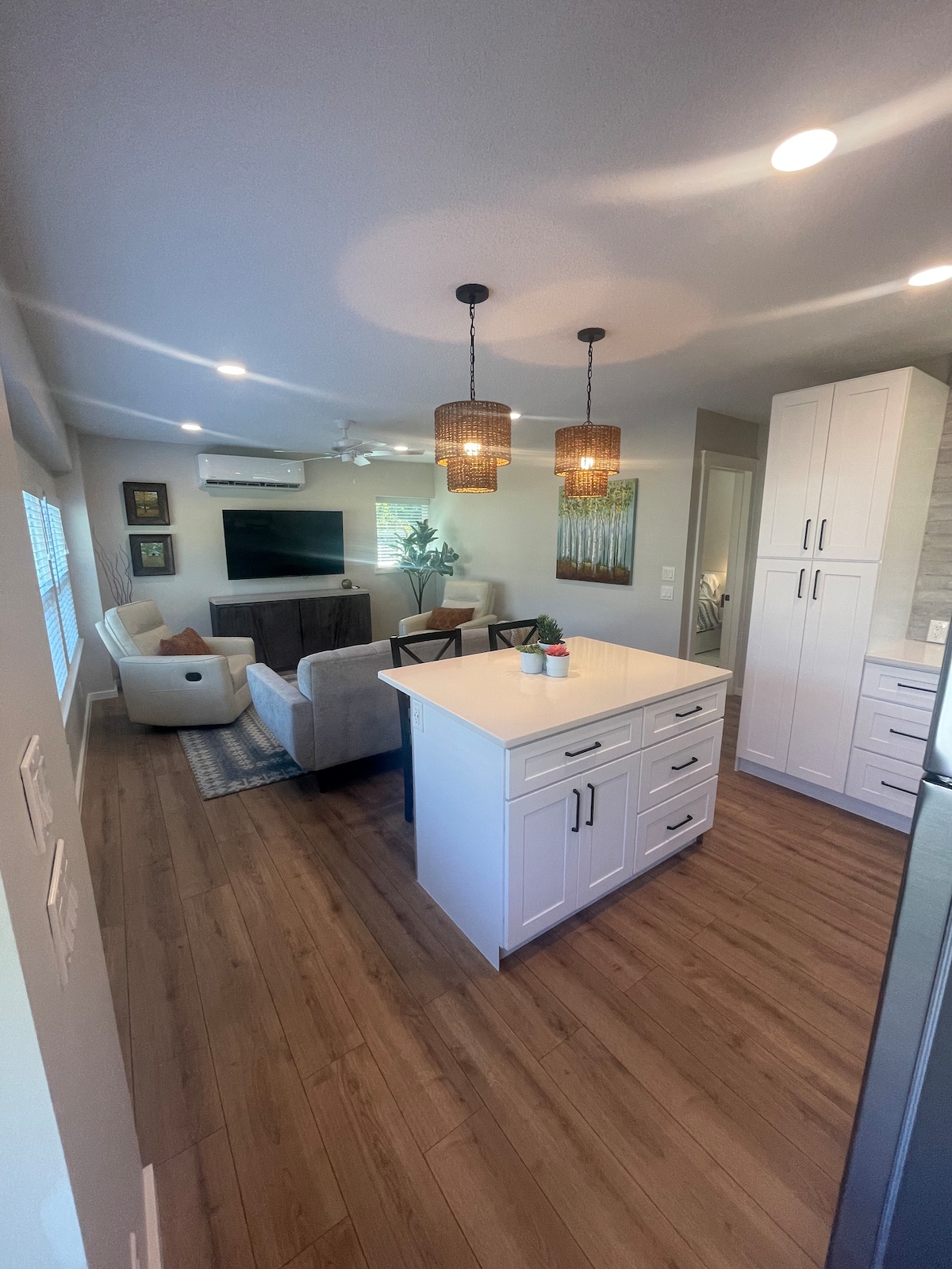 ¡Bienvenido al Zen Flamingo, un refugio tranquilo y elegante en St. John's, FL! Ubicada entre St. Augustine y Jacksonville Beach, nuestra casa ofrece una escapada relajante con una piscina privada, comodidades modernas y características de hogar inteligente. Tanto si te relajas junto a la piscina de agua salada, exploras las tiendas locales o ves tus programas favoritos, encontrarás todo lo que necesitas para desconectar. Disfruta de restaurantes, tiendas y playas cercanas. Descubre la experiencia completa de Zen Flamingo utilizando el código QR en la galería de fotos.