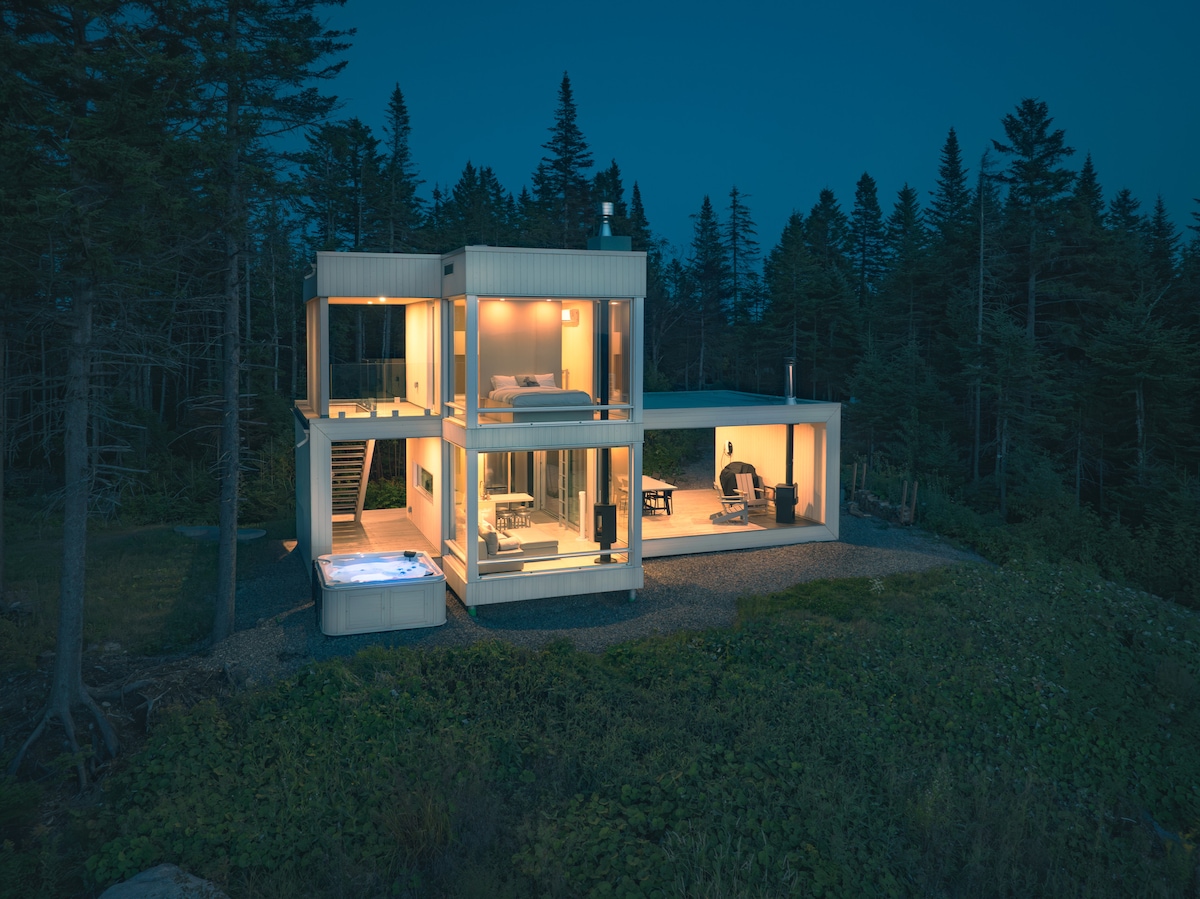 Escápese a esta microcasa encaramada en la cima de una montaña y admire las vistas panorámicas de las cumbres de los alrededores a través de sus paredes de vidrio. Relájese en el spa, accesible en cualquier época del año, mientras disfruta de las puestas de sol más hermosas. Descubre este tesoro escondido en el corazón del bosque boreal canadiense, que combina comodidad y funcionalidad en cualquier época del año. Una experiencia íntima e inolvidable, cerca de la mítica ciudad de Quebec, declarada Patrimonio de la Humanidad por la UNESCO.