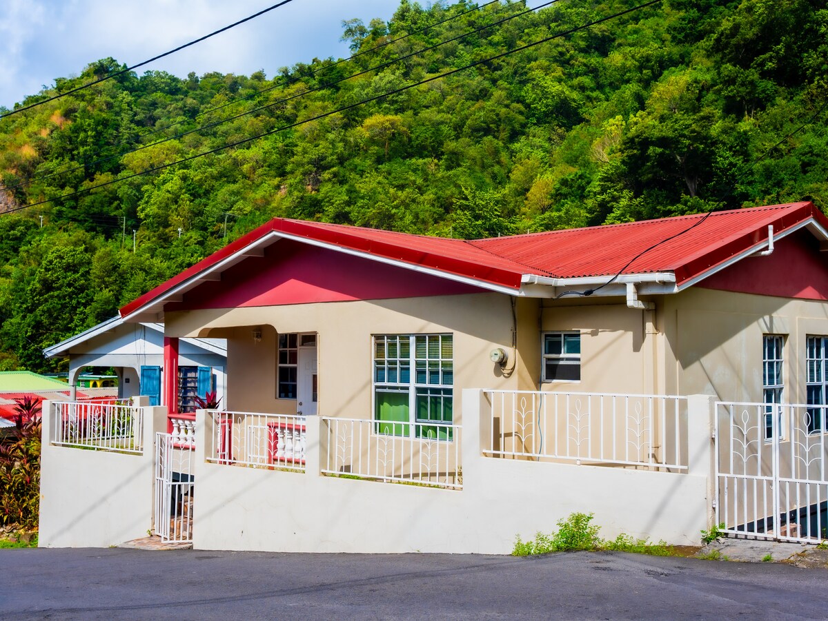 Situado en el centro del pintoresco pueblo de Soufriere. ¿Buscas el bullicio de la vida del pueblo? Ven a la experiencia . Muy cerca del buceo; Champagne/Scottshead, senderismo; primer / segundo segmento Sendero nacional de Waitukubuli y un montón de baños calientes de sulfuro, playa de burbujas/manantiales de sulfuro de Soufriere. Para completarlo, tienes acceso a todas las instalaciones en Rodney's Wellness Retreat; jardín botánico, wifi gratuito. Tu anfitrión también es un guía turístico especializado siempre disponible para ayudar. Ven “sin complicaciones” Bevin