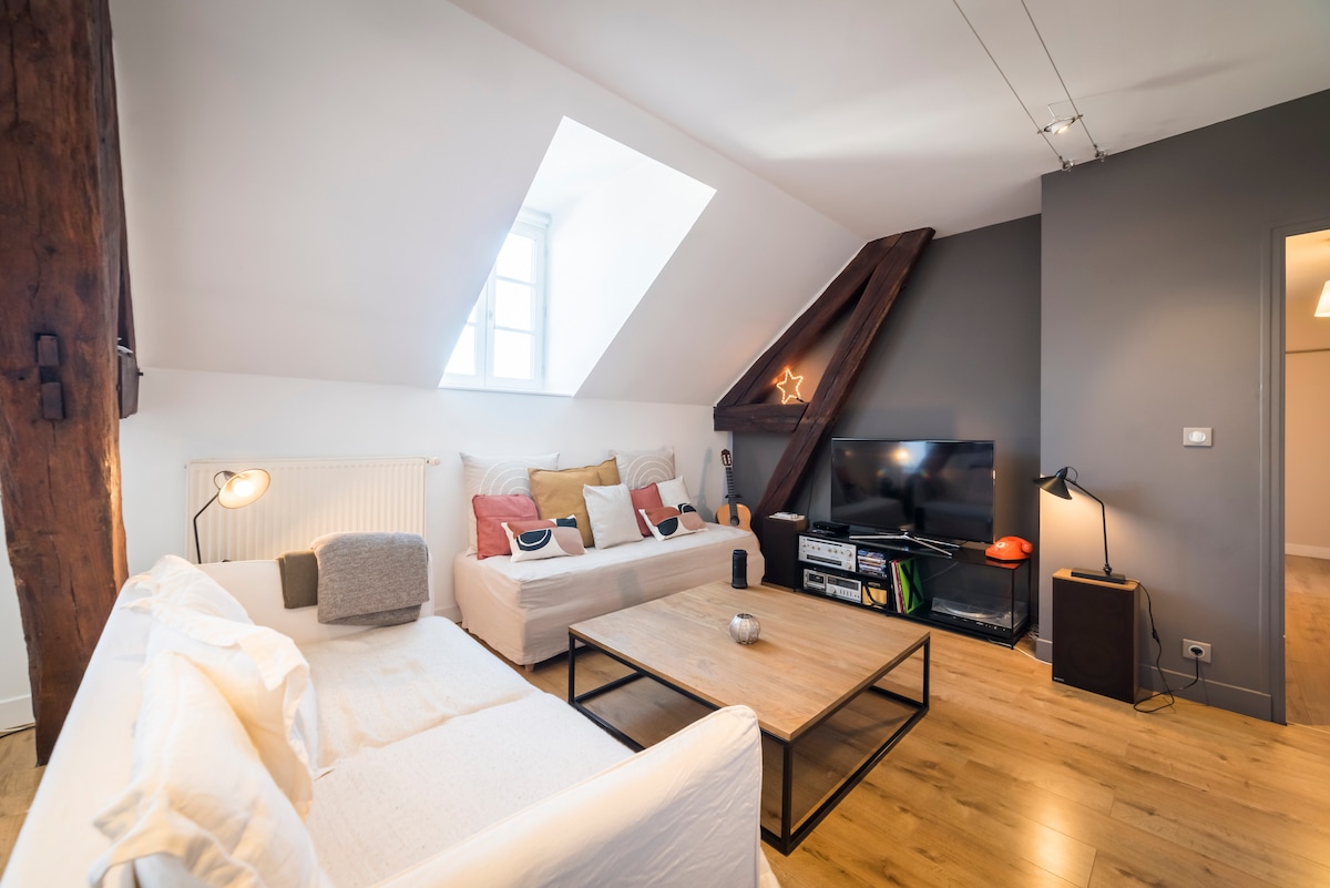 Apartamento tranquilo, agradable y luminoso en el corazón del distrito histórico de Auxerre. Con una ubicación ideal a dos pasos de las tiendas, restaurantes, la oficina de turismo, la estación de tren. Chablis y su viñedo a pocos kilómetros. Plaza de aparcamiento privada en patio seguro.