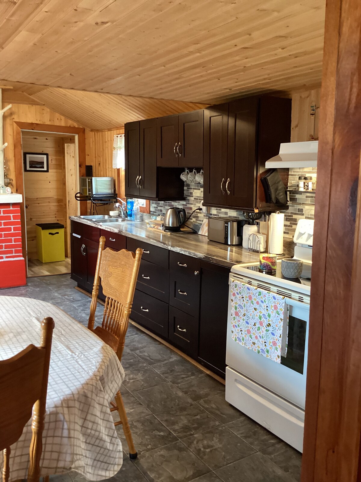 Ubicada en Bay Roberts, esta aislada casa de campo costera es una nueva construcción que ofrece un encanto rústico con un toque moderno junto con una hermosa vista al mar. Cuenta con 2 dormitorios, 1 baño, 2 zonas comunes y una cocina bien equipada. También cuenta con TV/Internet y un minisplit. En el exterior podrás disfrutar de la comodidad de un jacuzzi para seis personas, un estanque koi y la recolección de bayas en verano y otoño. El patio cubierto permite su uso durante toda la temporada. Ideal para familias y amigos que se reúnen.