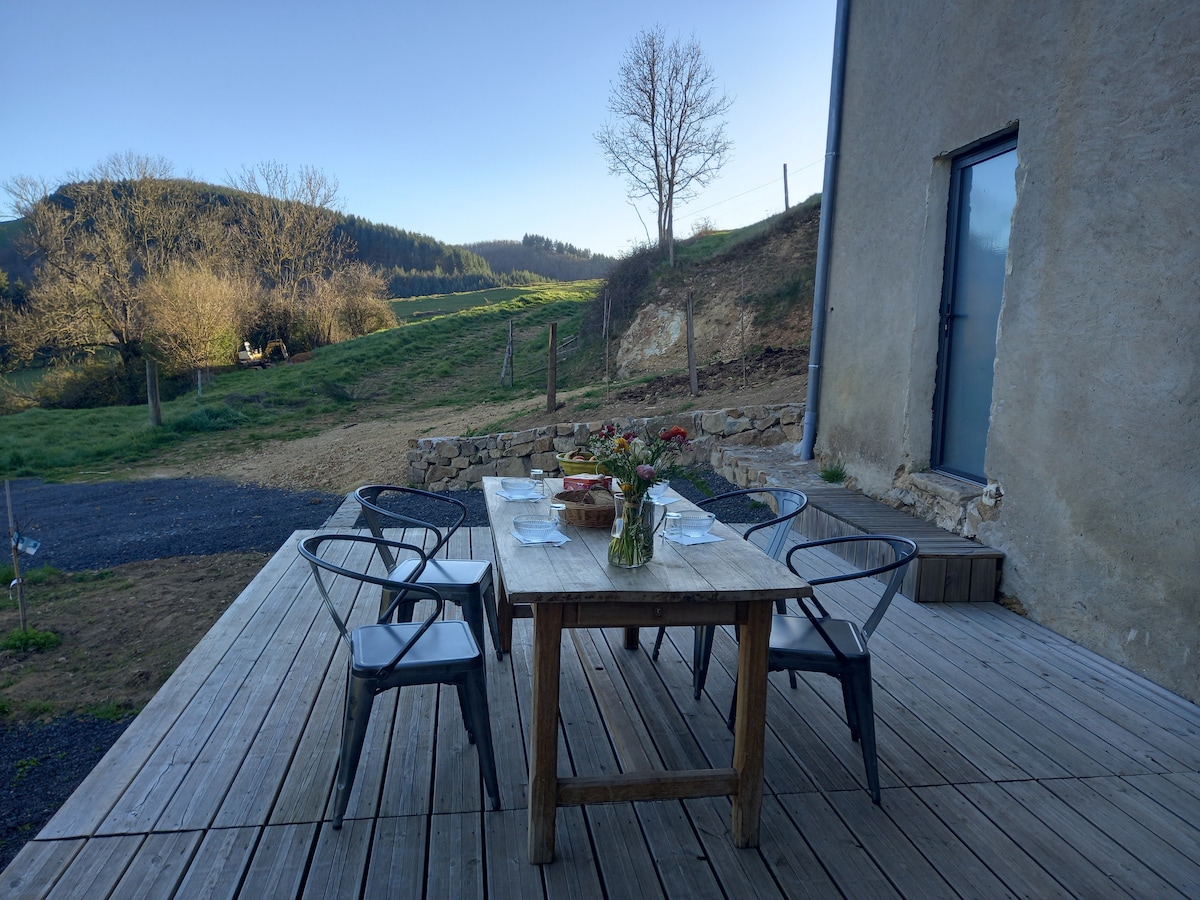 La casa es un chalé recientemente construido y acogedor. Disfrutarás de una región ideal para hacer senderismo o descubrir un rico patrimonio local. Situada en una aldea tranquila, serás recibido por Sam y Krisha, nuestros amigos y vecinos ingleses. A 10 minutos de la autopista (A89), entre Lyon y Clermont-Ferrand, La casa puede alojar a 4 adultos o a una familia con dos niños correctamente. La impresionante vista nos invitó a construir esta casa, queremos compartirla contigo...