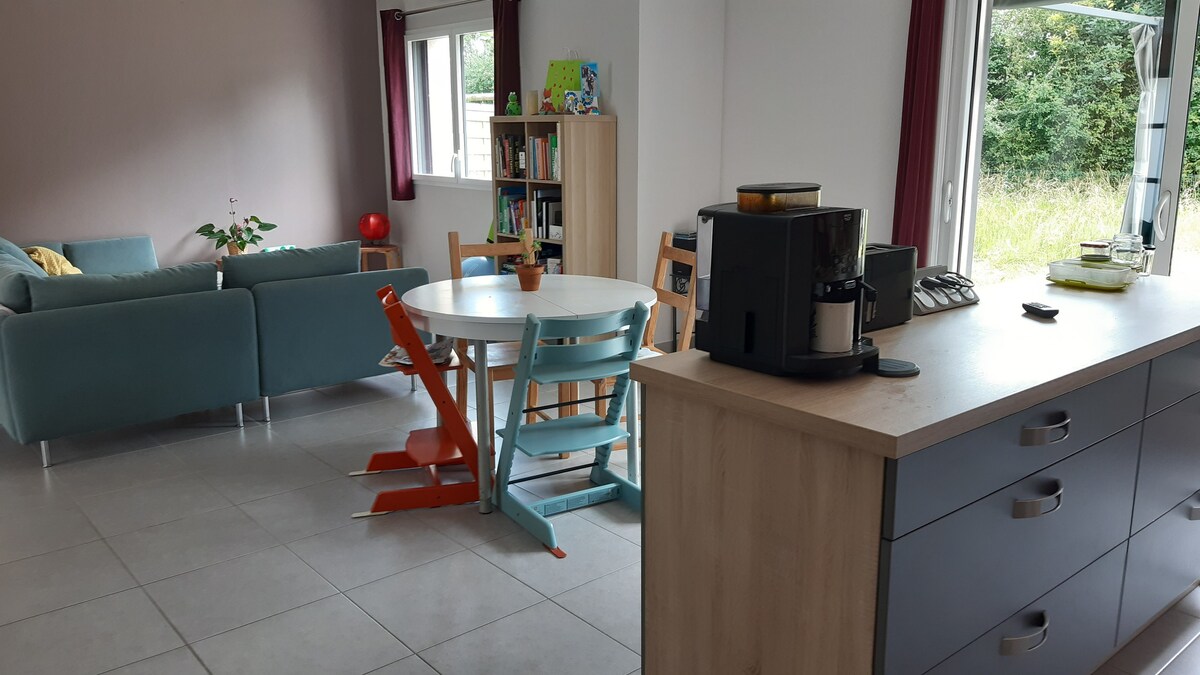 Venga a disfrutar de esta casa adosada con carácter (90 m2) en una zona tranquila de Brest. Ideal estancias familiares A 5 minutos del centro de la ciudad en coche Estacionamiento gratuito Equipado para 5 con posibilidad de una cama adicional para 2 personas en el altillo. Habitación con cama doble y una con cama doble y individual TV, WiFi Pequeño jardín agradable con terraza Vivienda para no fumadores. No es un lugar de fiestas. No se aceptarán solicitudes de grupos de jóvenes y estudiantes.