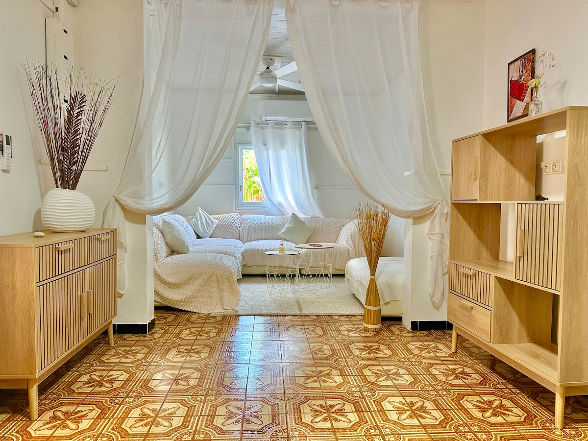 Muy bonito apartamento , totalmente climatizado, de 60 metros cuadrados, situado en el centro de St Pierre, al fondo de un camino de entrada en una zona tranquila. La playa principal y el mercado cubierto están cerca. Los sitios más cercanos son el volcán, Grande Anse, la destilería Isautier, la finca Café a la parrilla, la antigua finca ...