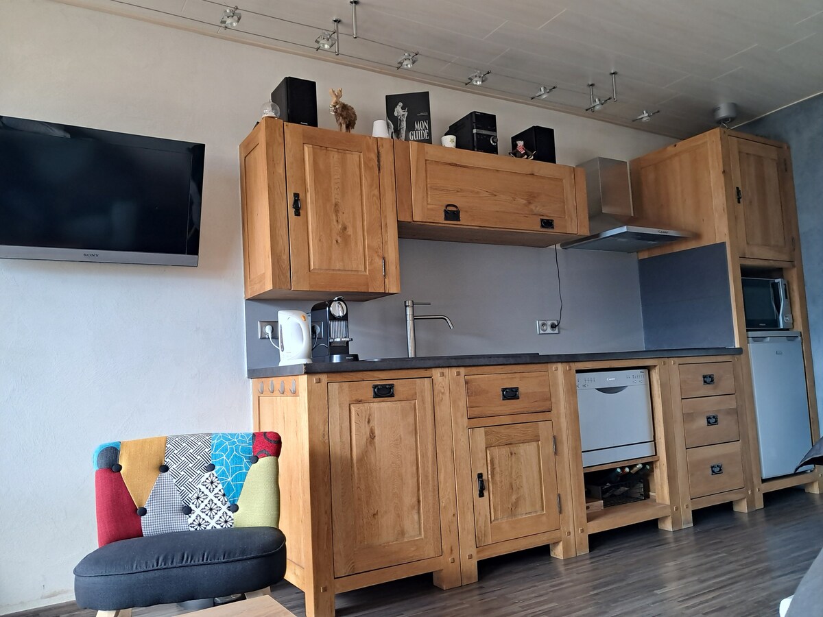 Estudio dúplex al pie de las pistas de esquí, de la escuela de esquí, ⛷️ de las tiendas y restaurantes (en invierno) 🍽️ con un gran balcón orientado al sur ☀️ con una magnífica vista de las montañas. Este apartamento es ideal para 2 adultos y 2 niños