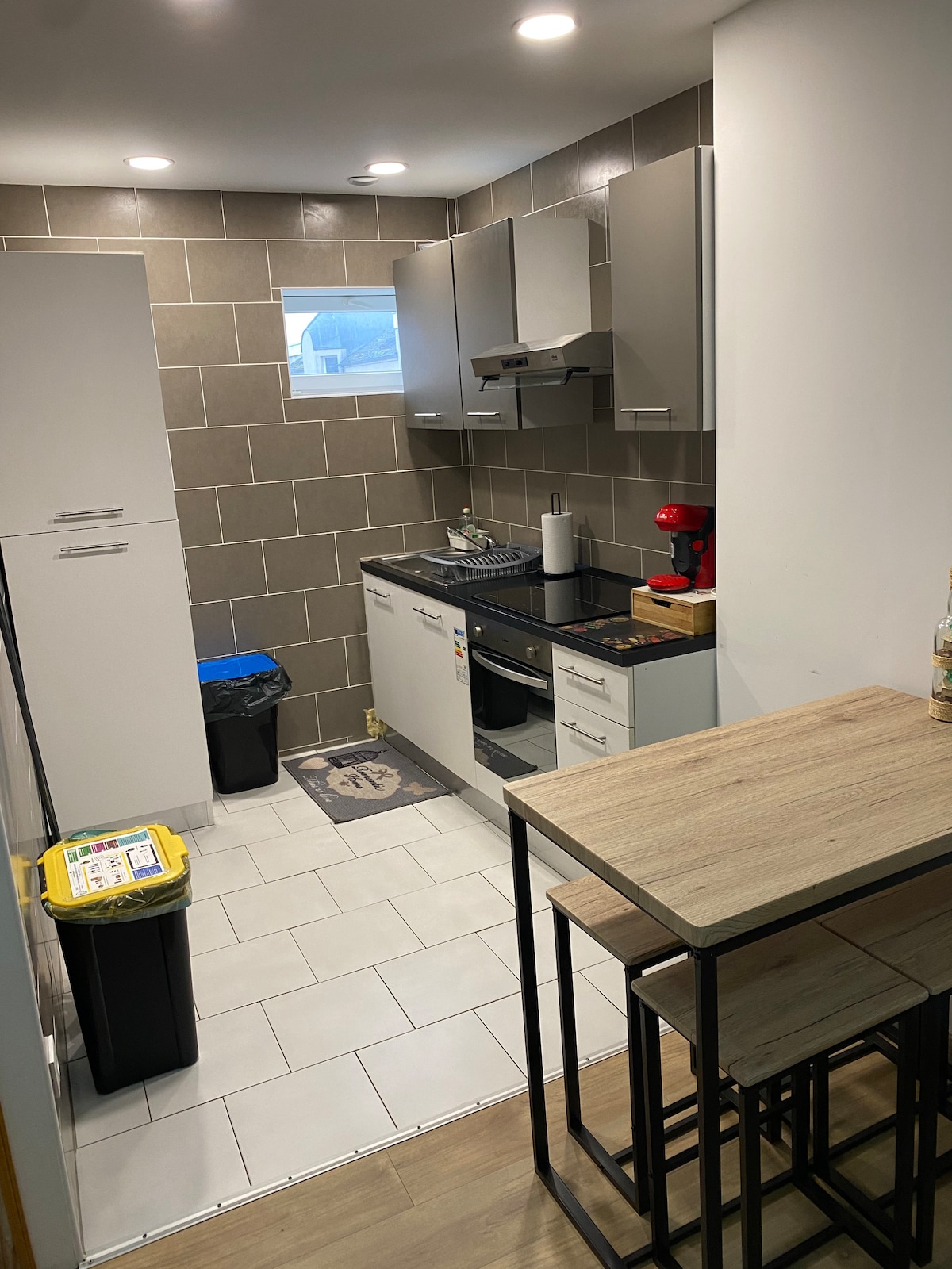 Este alojamiento totalmente renovado dispone de aparcamiento privado justo enfrente. Se entra en una cocina abierta a la sala de estar con todas las comodidades disponibles (café, té, etc.). La habitación ofrece una cama doble de 140 cm con toda la ropa de cama preparada para su llegada. Un cuarto de baño moderno con toallas, gel de ducha, champú. La lavadora está disponible. La propiedad también está equipada con aire acondicionado reversible.