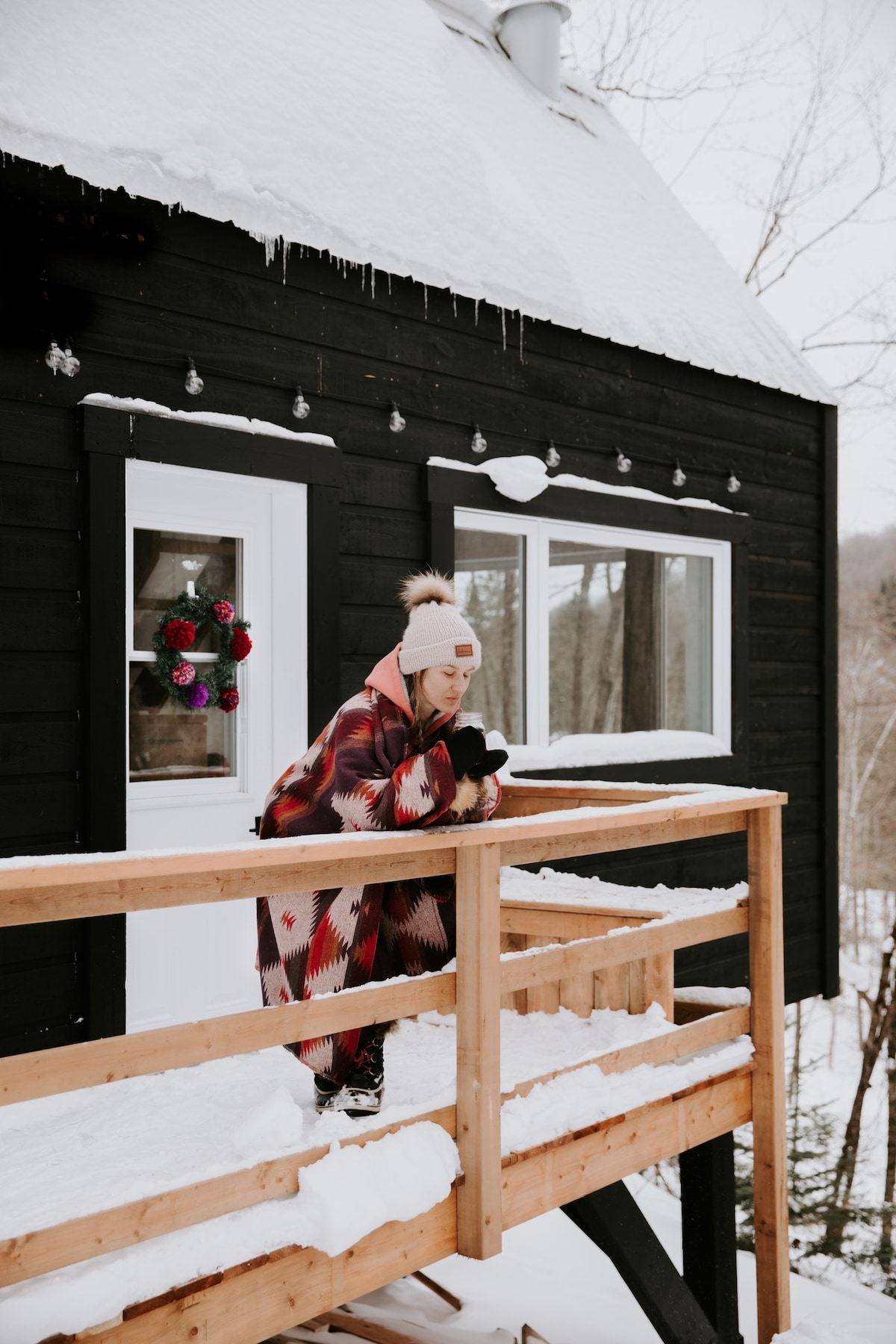 Le chalet de l'Orée du Bois Joli est situé à Val-David et possède une vue surplombant la cime des arbres! Installez-vous dans le spa pour observer les étoiles! Promenez-vous en raquette sur la propriété d'un acre qui longe les pentes du Mont Alta. Relaxez-vous dans notre hamac géant intérieur et profitez de la féérie de ce havre en bois! Randonnée, pentes des skis, trois belles plages et de nombreuses activités et attraits environnants vous attendent.