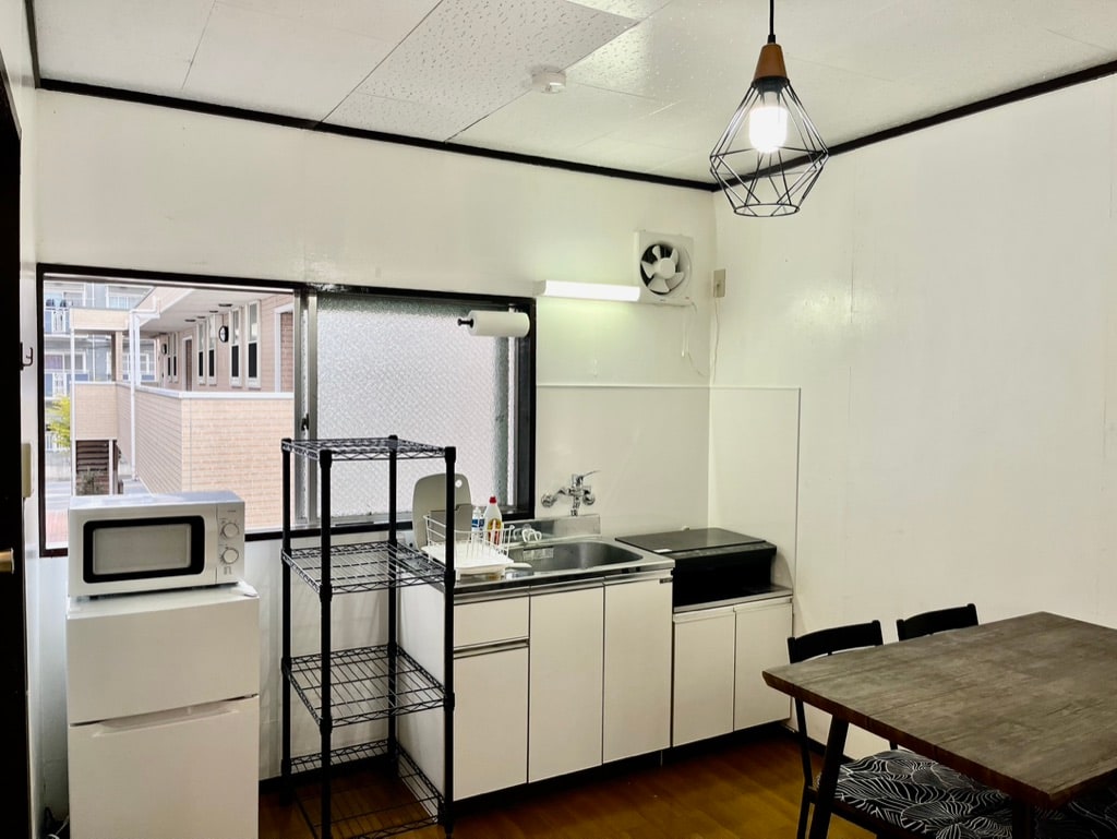 Enjoy a private stay in a licensed accommodation next to a 24-hour Lawson. Just 30 minutes by train to Tokyo Station. Free bikes, Wi-Fi, Amazon TV, a ¥1,000 breakfast voucher, and a complimentary taxi from Kawaguchi Station on check-in day. The cabin does not have a kitchen, so you will likely dine out or use ready-made meals. The room is simple, with two beds and two small desks. It is also equipped with a refrigerator and air conditioner, as well as a private toilet and shower room.