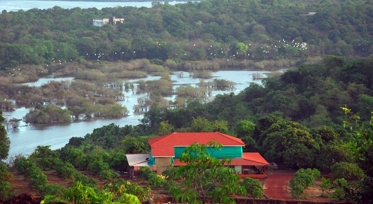 Terrakot, una granja de 10,000 pies cuadrados en una granja de mango y anacardo de 20 acres. Los campos de arroz fragantes, el canto musical de los pájaros, el calor matutino del sol naciente que atraviesa las montañas y la música serena del lecho del río transformarán todas tus preocupaciones del cinturón urbano en un estado mental tranquilo y te darán una de las experiencias más “satisfactorias para el alma”. La manta natural de estrellas por la noche te ayudará a meditar en el sueño profundo. ¡Ven y enamórate de esta escapada sin contaminación!