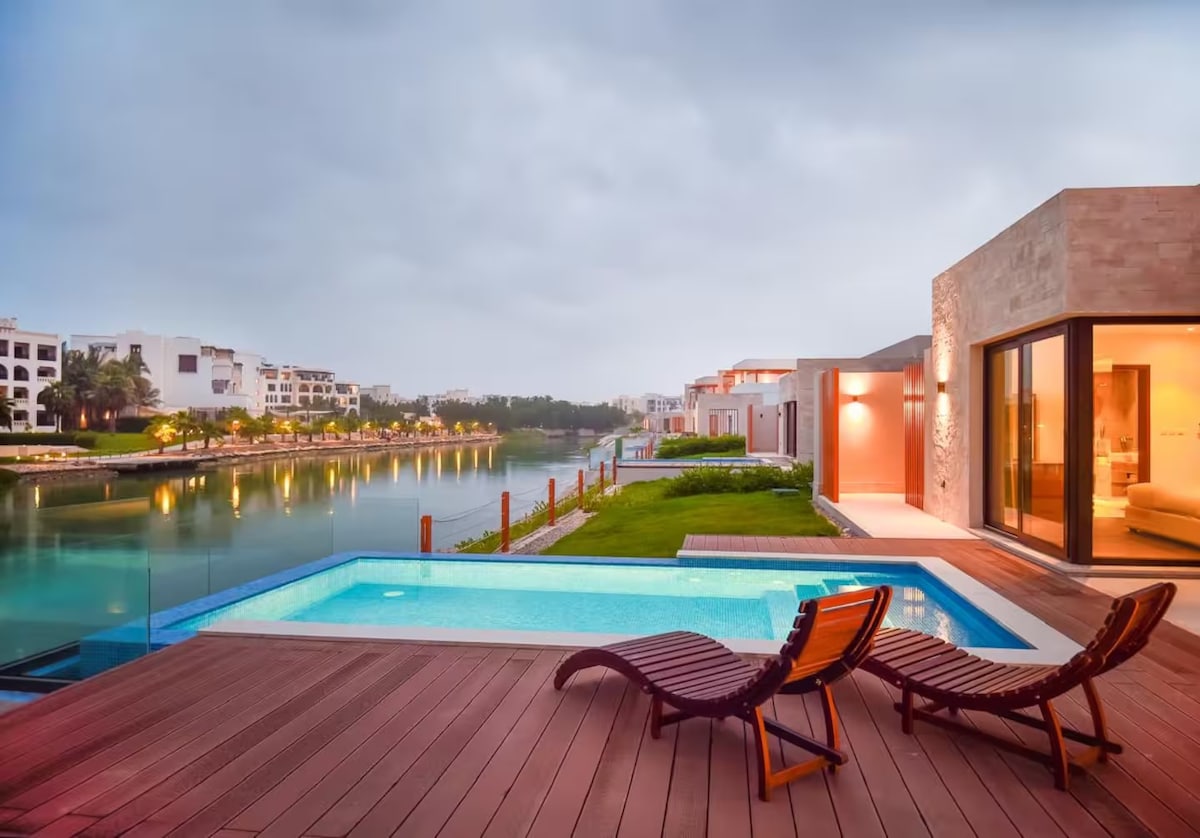 Enjoy a taste of Salalah in Arabian Amber A stunning home earthly designed for comfort & peace. Here our guests can experience their stay in Salalah with a sense of relaxation in a most tranquil environment. An endless pool awaits you just outside your back door steps It’s surrounded by outdoor fitness and children’s play equipment, a yoga podium and BBQ facilities A tennis court and waterpark are close by Captivating beaches only a short walk from your home. What are you waiting for!