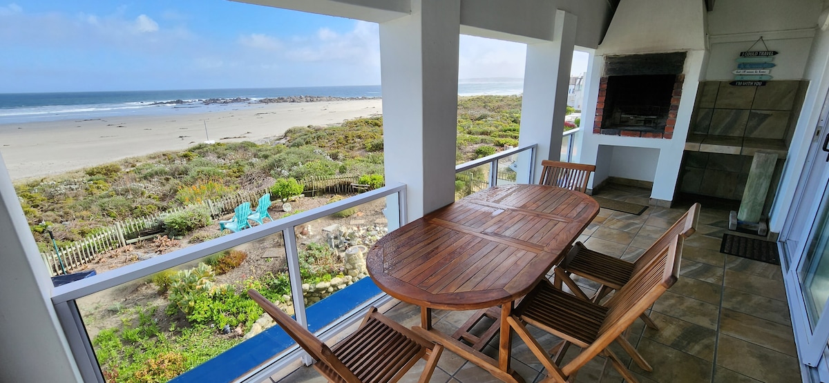 El ático de 4 estrellas está justo en la playa con impresionantes vistas al mar. 2 dormitorios y dos baños. Salón/cocina/comedor de planta abierta, balcón braai. Se proporciona equipo de cocina, ropa de cama y toallas. DSTV completo, mantas eléctricas, chimenea, servicio.