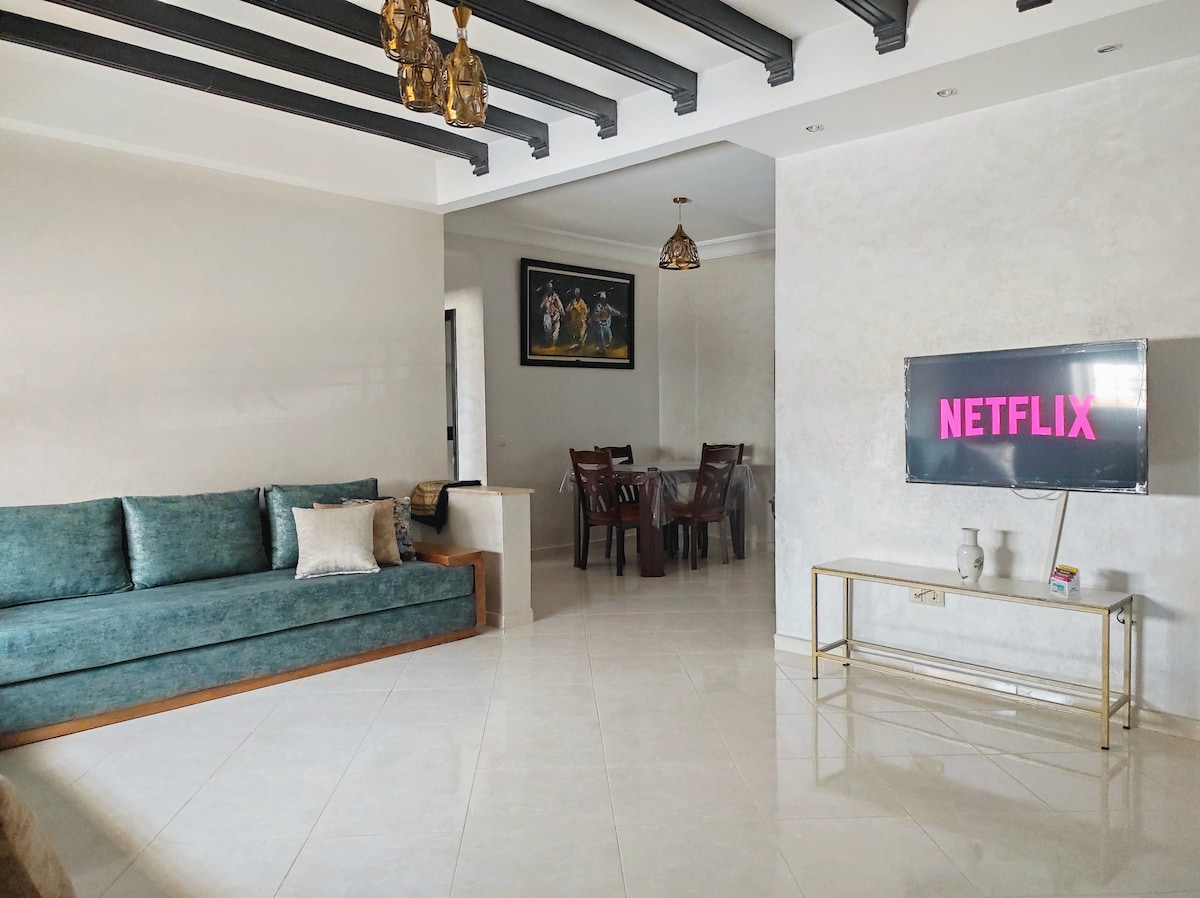 A pocos minutos del aeropuerto de Rabat-Salé, este cómodo apartamento es ideal para viajeros que buscan un alojamiento funcional. Fácil acceso en coche o transporte público. Los apartamentos cuentan con todas las comodidades para que tu estancia sea cómoda y agradable, incluidas cocinas totalmente equipadas, amplios salones y balcones privados. Wifi y TV. Con su conveniente ubicación y modernas instalaciones, este apartamento es una base ideal para tus viajes.