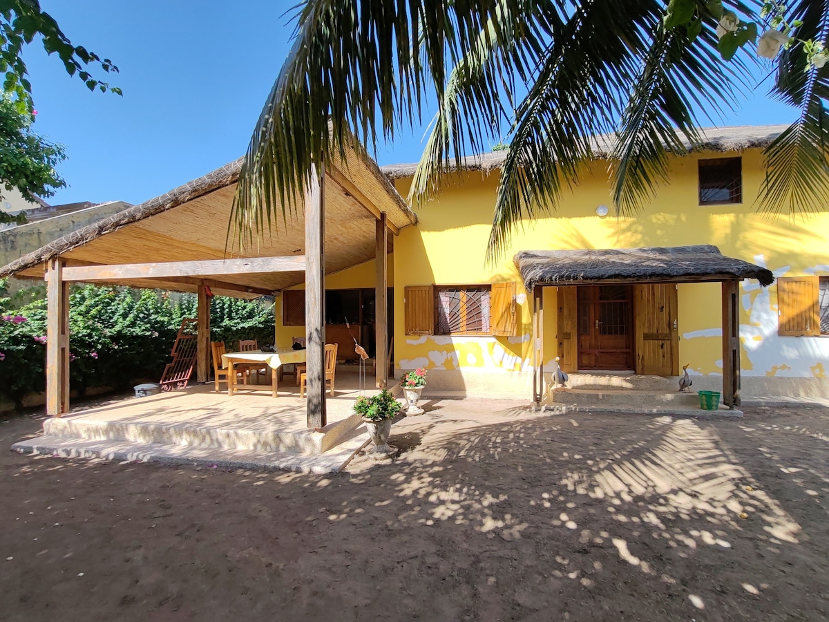 Encantadora cabaña con acceso independiente en la paz de un gran jardín verde, ¡con una gran piscina para refrescarse! Terraza exterior iluminada, reservada para los viajeros. Barrio tranquilo, cerca del alquitrán (1 minuto) y del mar (5 minutos) Si sale a la izquierda, las auténticas y animadas playas de Mbour se abren para usted , y si sale a la derecha, ¡estas son las playas turísticas de Saly que encontrará!