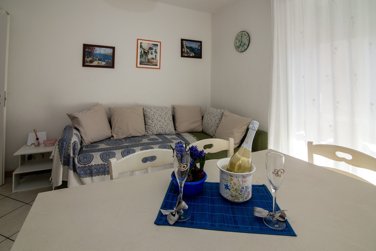 ¡Te doy la bienvenida a mi alojamiento en San Bartolomeo al Mare! ¡Disfruta de unas vacaciones llenas de tranquilidad y buen mar en este hermoso pueblo de Liguria! El alojamiento está muy cerca de las playas y del centro del pueblo (a unos 350 metros), ofrece todos los servicios necesarios (aire acondicionado, Smart TV, wifi, utensilios de cocina, hervidor, cafetera, nevera, congelador, horno, microondas, lavadora, parrilla, varios equipos de playa) y tiene un sofá cama para 2 personas y 3 camas individuales.