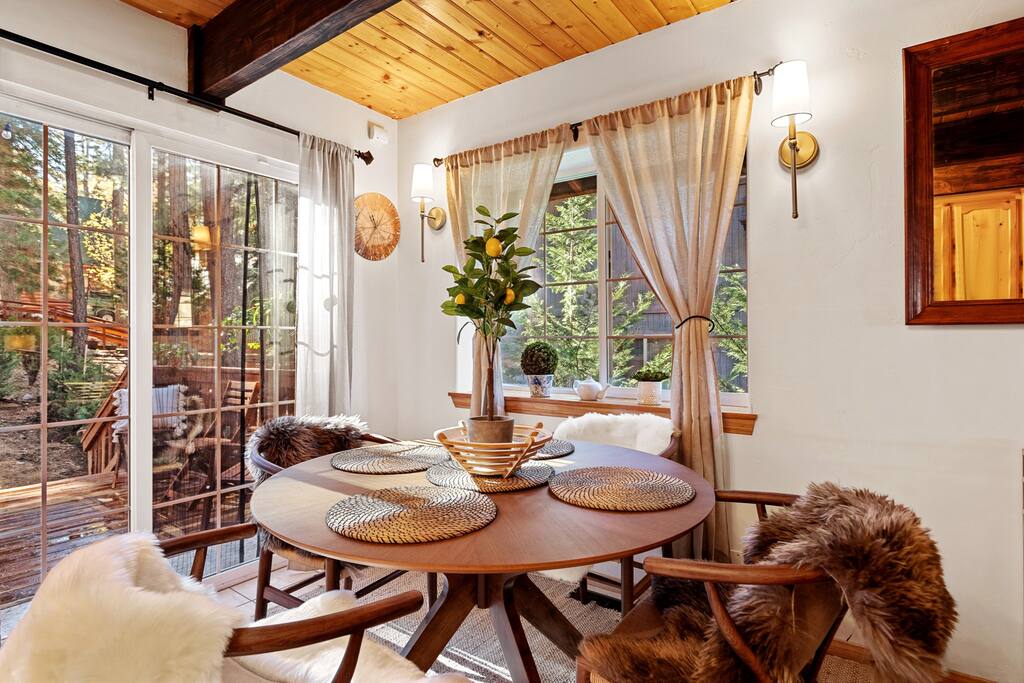 Te damos la bienvenida a Foxwood Cabin. Una cabaña Gambrel de mediados de siglo en el lago Big Bear. Esta acogedora cabaña es aprox. 1000 pies cuadrados situados en 1/4 acre. Cuenta con 2 dormitorios, 1 baño, sala de estar con techos altos, bonita cocina y porche envolvente. Balcón privado junto al maestro con vistas a un gran patio y a los árboles. Con una ubicación céntrica en el deseable barrio de Fox Farm, a solo 5 minutos en coche de las pistas y el pueblo. A poca distancia a pie o en bicicleta del lago y tiendas de comestibles y restaurantes cercanos. ¡Ven a atrapar un ambiente!