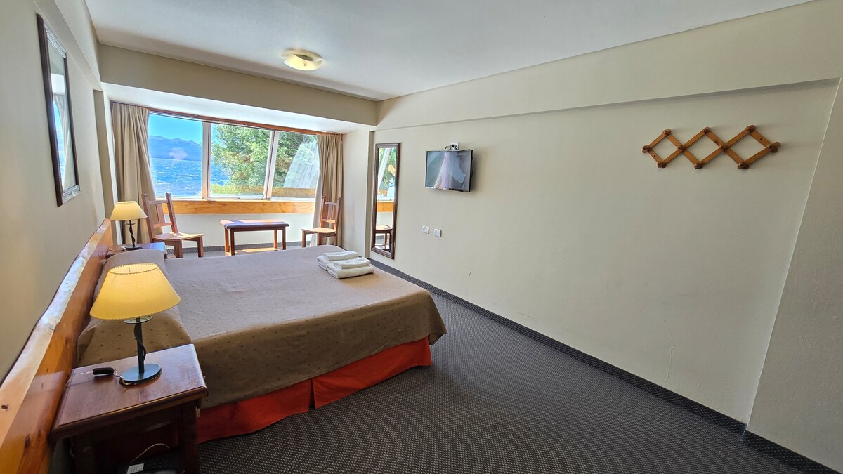 El Hotel se encuentra ubicado en la Avenida Bustillo, a 1200 metros del Centro Cívico, lo que le permite estar cerca de la Ciudad pero alejado del ruido.- Todas nuestras habitaciones cuentan con vista parcial o total hacia el lago, con acceso privado a la costa del Nahuel Huapi.- Piscina climatizada, Desayuno buffet, con elaboración propia en casi la totalidad de lo que ofrecemos.- nuestro patio le permite la experiencia de disfrutar del Parque Nacional, sin alejarse de su habitación.