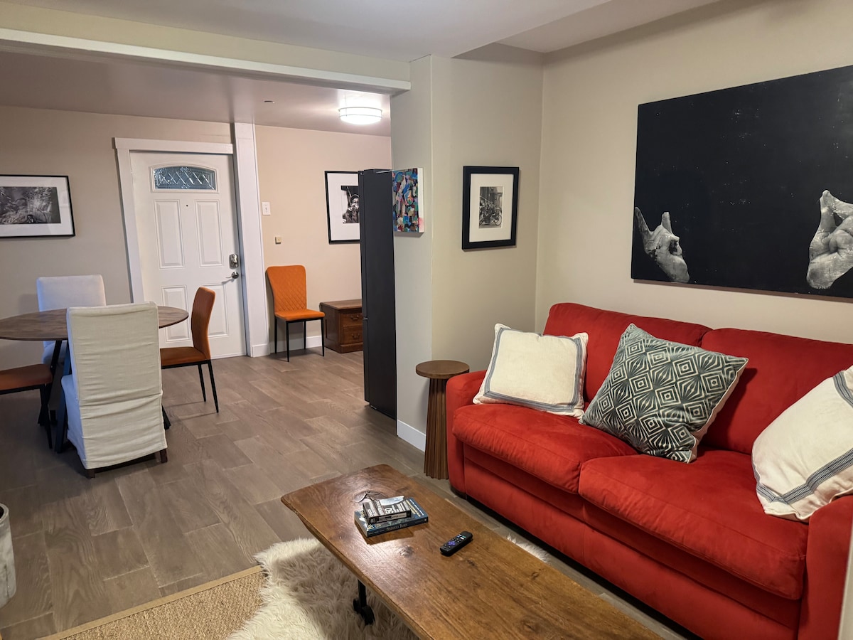 En una calle tranquila de San Francisco se encuentra esta moderna casa. Un momento de respiro del bullicio de la vida en la ciudad. Tómate un café en la tranquila terraza y disfruta de nuestros gigantescos árboles de pomelo. A pocos pasos tendrás acceso a las muy eficientes líneas de autobús o Bart (tránsito rápido del área de la bahía) que te llevarán a cualquier lugar que desees ir. También hay acceso a alquileres de bicicletas de la ciudad a una manzana de distancia.