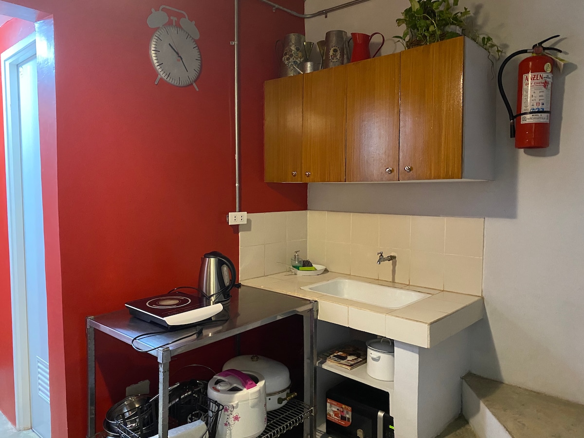 Two-story gated house w/ a garage& a mini porch. Comes with 2 rooms -- room 1 has a queen size bed & room 2 has a double bunk beds. All rooms are w/ split type aircons. The living room area has a smart TV, free WIFI & Netflix access, a sofa set w/ entertainment items (books, board games, stationaries & pens). The kitchen is w/ new & complete appliances (Ref, electric kettle, toaster, rice cooker, induction stove & pots. Kitchenware & utensils are also provided. The rest room is with heater.