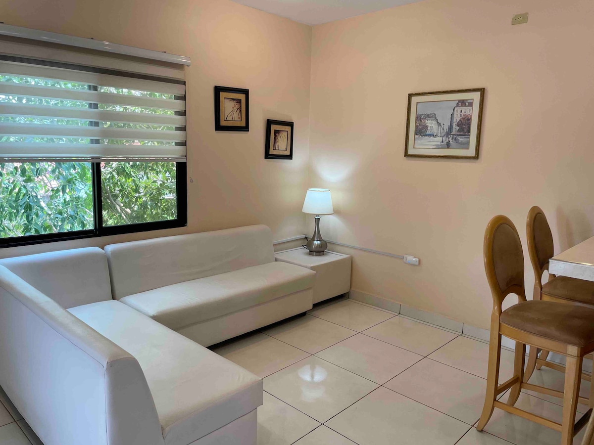 Apartamento NUEVO! Entrada Independiente, con las comodidades en una habitación para 3 personas con A/C, wifi, cable, Centro lavado y secado, estufa y refrigerador, vajía completa, sala, comedor, desayunador, baño con secador, planchador, toallas y almohada adicionales. CONTAMOS CON FACTURA CAI