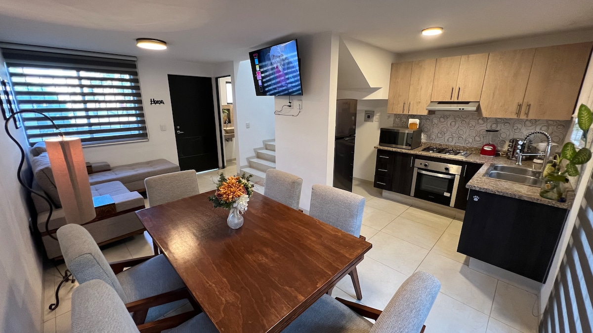 Descubre un hermoso Loft de disenador, donde la comodidad, la limpieza y el buen gusto se combinan para ofrecerte una experiencia inolvidable. Cada rincon esta cuidadosamente decorado, ideal para descansar, trabajar o disfrutar de una escapada en familia, grupo o pareja. Ubicado dentro de fracc. privado con vigilancia las 24 horas, ademas de acceso autonomo. Perfecto para estancias hasta por 15 dias, viajes de negocios, turismo o simplemente desconectarse en un espacio moderno y acogedor.
