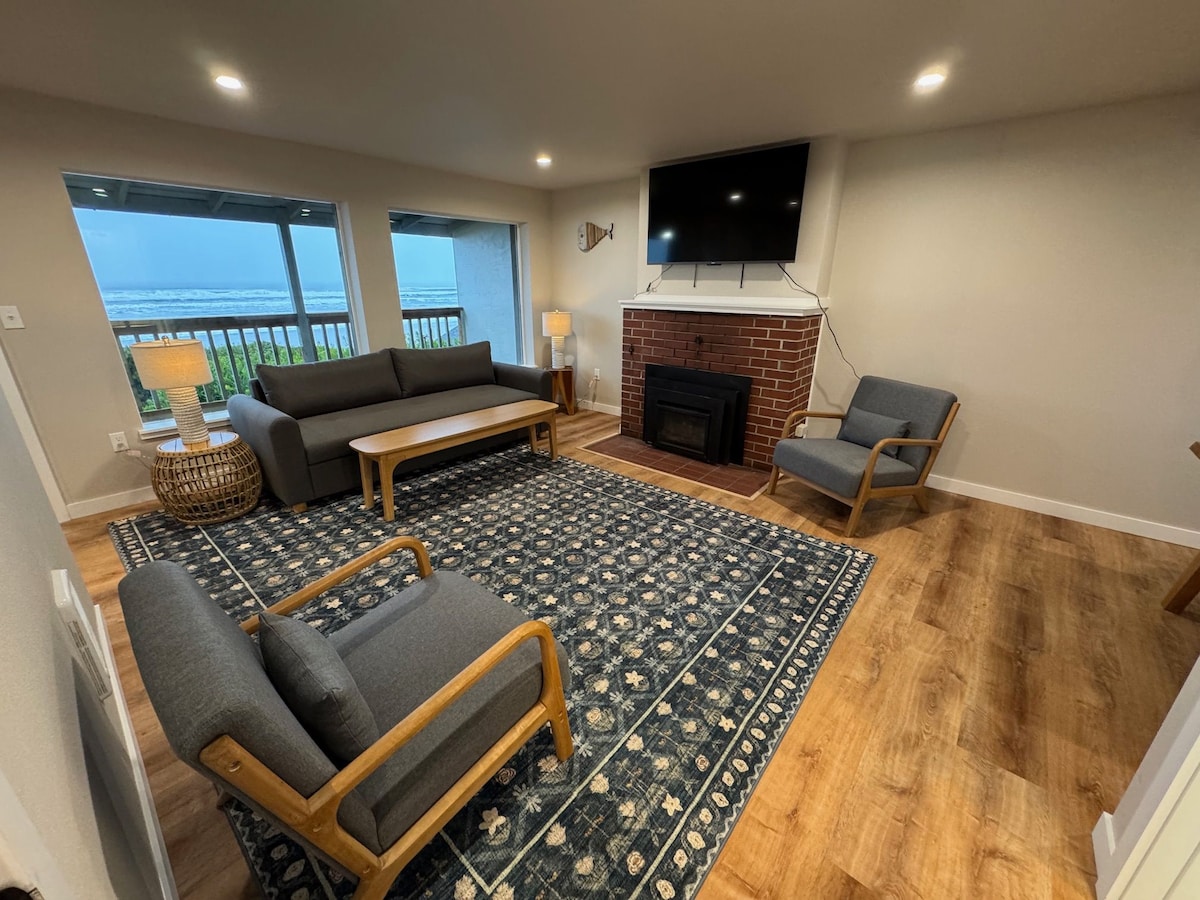 Experimenta la magia de la costa de Oregón en esta cabaña dúplex recién renovada frente al mar con chimenea de gas, perfectamente ubicada en la prístina Big Stump Beach. Sal de tu puerta hacia kilómetros de costa de arena, donde las olas rítmicas y la brisa costera crean el telón de fondo perfecto para tu escapada a la playa. En el interior, encontrarás un interior cuidadosamente renovado con una cocina totalmente equipada con servicios modernos, incluido un lavavajillas para limpiar sin esfuerzo después de las comidas junto al mar. La cabaña tiene capacidad para cuatro personas con una cama tamaño king en el dormitorio y un sofá cama de tamaño completo en un acogedor rincón de TV fuera de la sala de estar. La terraza cubierta frente al mar te permite disfrutar de los sonidos del océano mientras te mantienes protegido del clima. La chimenea de gas se suma al ambiente cálido y acogedor durante tu estancia. Tu base perfecta para aventuras costeras: De norte a Waldport (a pocos minutos): sumérgete en auténticas actividades costeras como la pesca de cangrejos desde Dock of the Bay o McKinley's Oregon Coast Marina. Durante la marea baja, prueba con almejas cerca del puente. De sur a Yachats (a solo unas pocas millas): descubre restaurantes encantadores y explora notables pozas de marea rocosas a lo largo de la espectacular costa. Exploraciones adicionales: visita el fascinante acuario de Newport (30 minutos al norte) o embarca en una aventura en las dunas de arena (a 45 minutos al sur), accesible a pie, alquiler de vehículos todoterreno o visita guiada. ¿Viajas con un grupo? Cape Cod Cottages cuenta con ocho unidades adicionales en la propiedad, perfectas para reuniones familiares o reuniones de amigos. Los servicios compartidos incluyen: 300 pies de acceso privado a la playa Sala de juegos lista para el entretenimiento con futbolín y ping pong Lavandería gratuita para los huéspedes Tres estaciones de carga para vehículos eléctricos