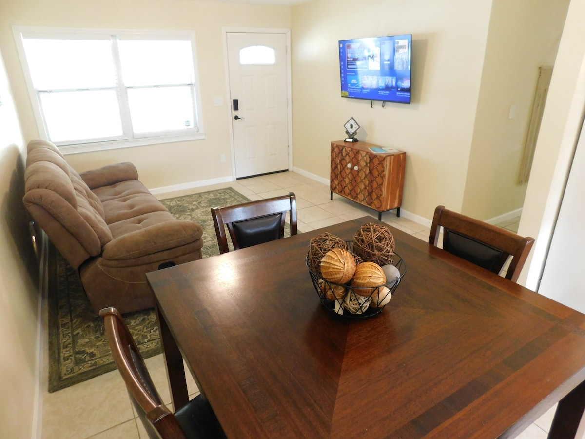 Sin “tarifas de limpieza”. *Pequeño apartamento individual (con cocina) adjunto a la casa principal* A 15 minutos de las playas de la zona. Ideal para viajeros solitarios, pero adecuado para parejas. Zona residencial tranquila con senderos junto al lago. Entrada privada y baño. 1 cama tamaño queen. Cocina. Wifi rápido. 1 plaza de estacionamiento. Acceso al patio. Mininevera, TV, microondas, Keurig, freidora de aire. Todo lo que necesitas, a 15 minutos de las playas de la zona, el anfiteatro de San Agustín, el parque estatal Anastasia o el centro de la ciudad a un excelente precio para la zona.