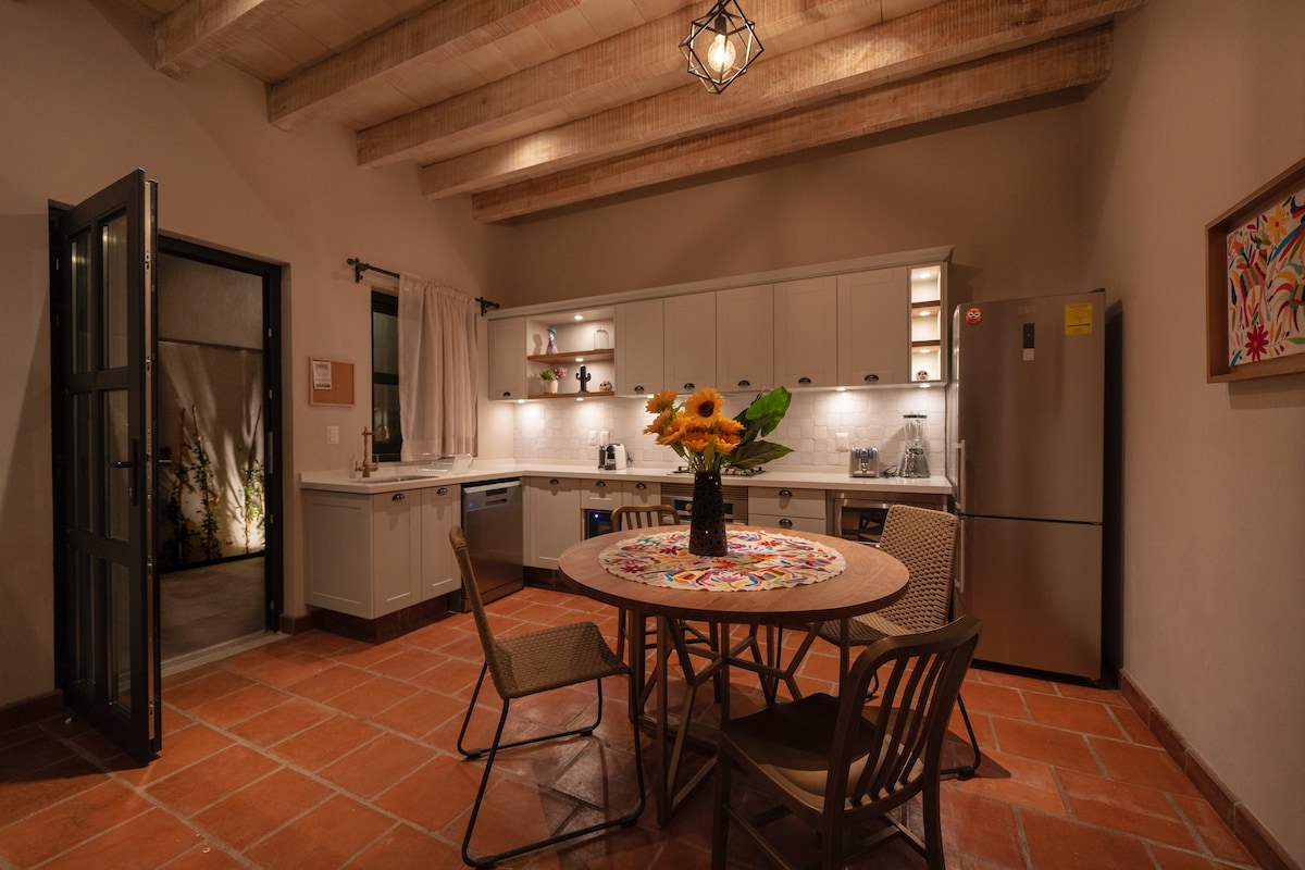 Villanueva es un refugio ideal para una o dos parejas que deseen un toque de lujo y un diseño cuidado en una tranquila calle sin salida. También es perfecto para una familia de hasta 6 personas que viaja con padres o niños mayores. Algunos de los mejores cafés de la ciudad están a la vuelta de la manzana y, sin embargo, también está a poca distancia a pie del corazón del centro. Tanto si asistes a una boda, trabajas con wifi rápido de 300 Mbps o simplemente quieres un lugar especial para tu visita a San Miguel de Allende, ¡disfruta de Villanueva!