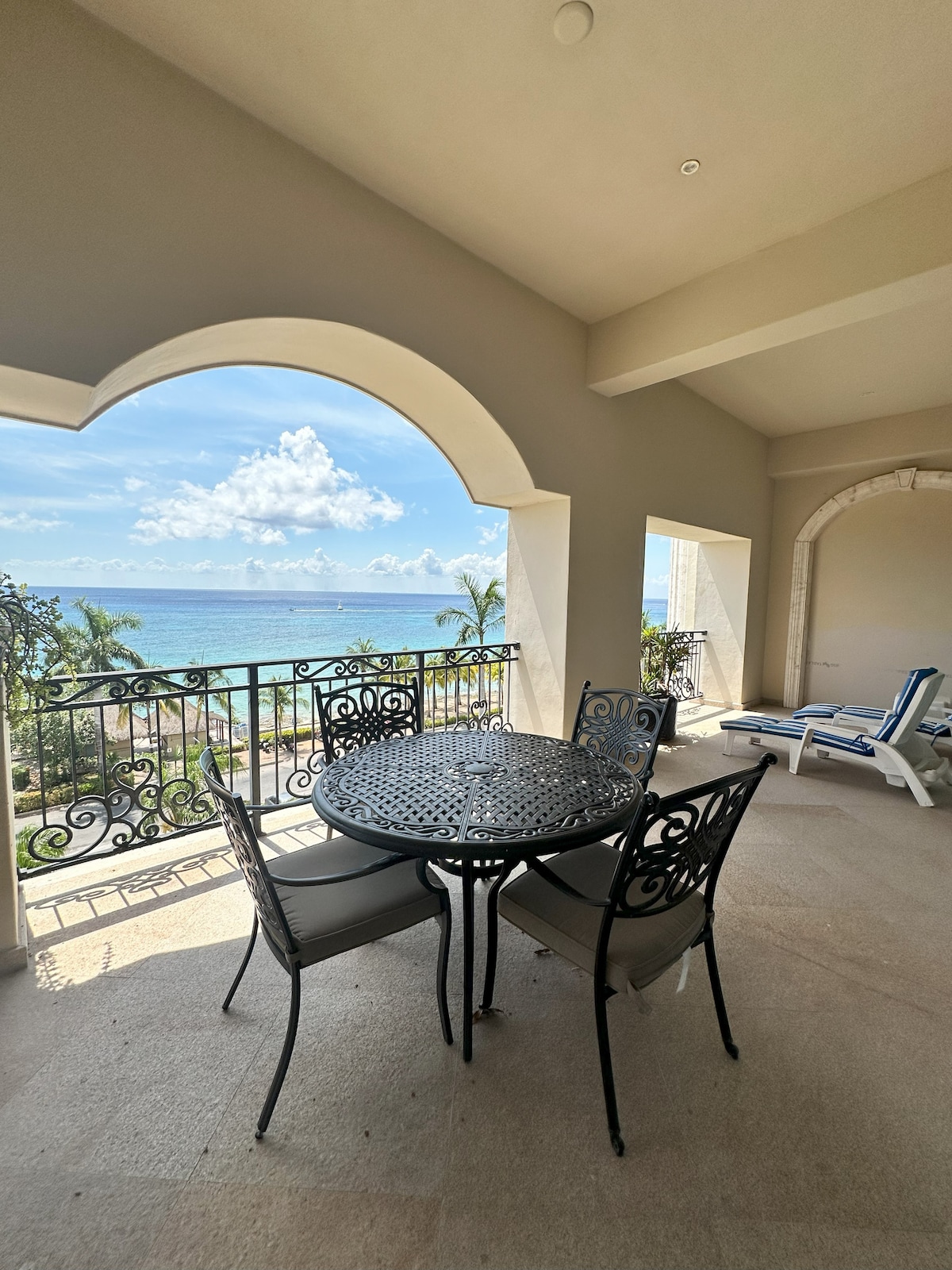 Hermoso condominio frente al mar en planta baja con 3 habitaciones, 3,5 baños, con aire acondicionado central en todas las habitaciones. Vistas al mar desde todas las habitaciones, amplio patio en el primer piso, camine directamente hacia la piscina infinita de 60 pies y el océano Caribe desde su patio. Piscina de agua dulce, jacuzzi, varias áreas de descanso con sombrillas a la sombra. Hay un ascensor en el edificio de 8 niveles, este condominio está en el nivel 1 de la piscina.