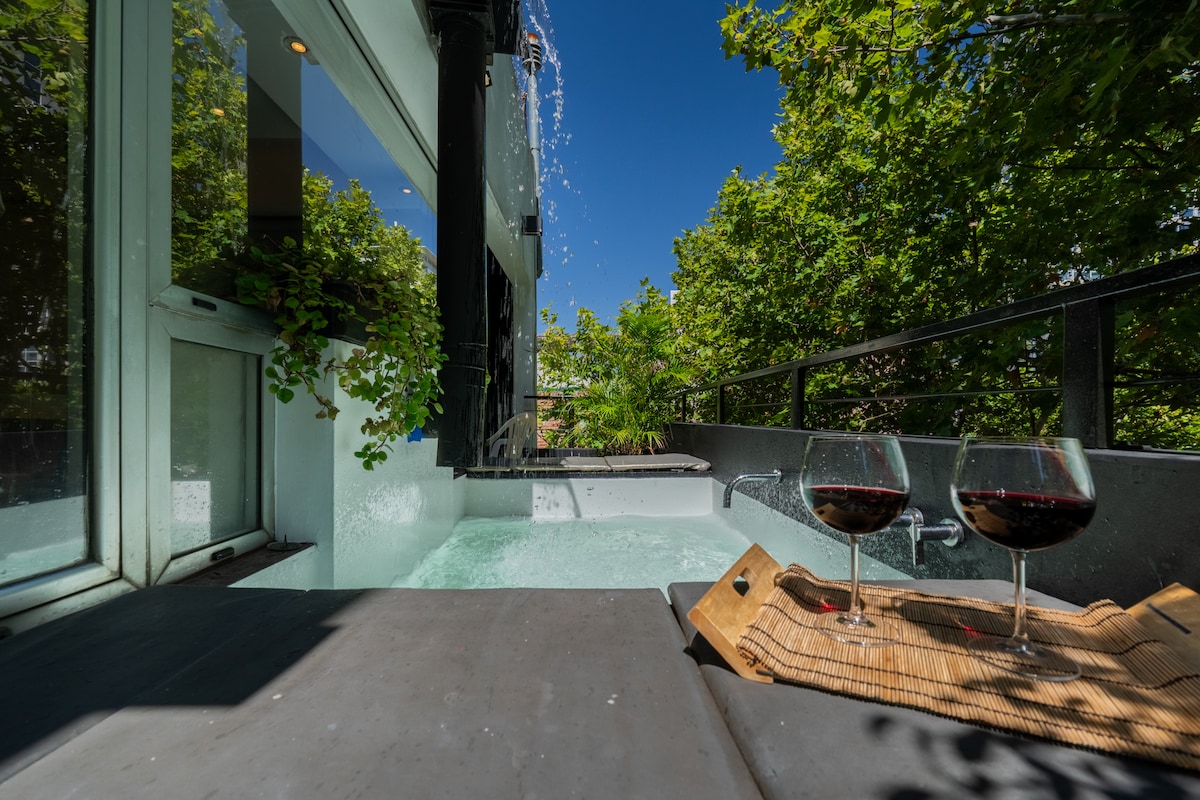 Área de trabajo dedicada con jacuzzi en ático dúplex acogedor
