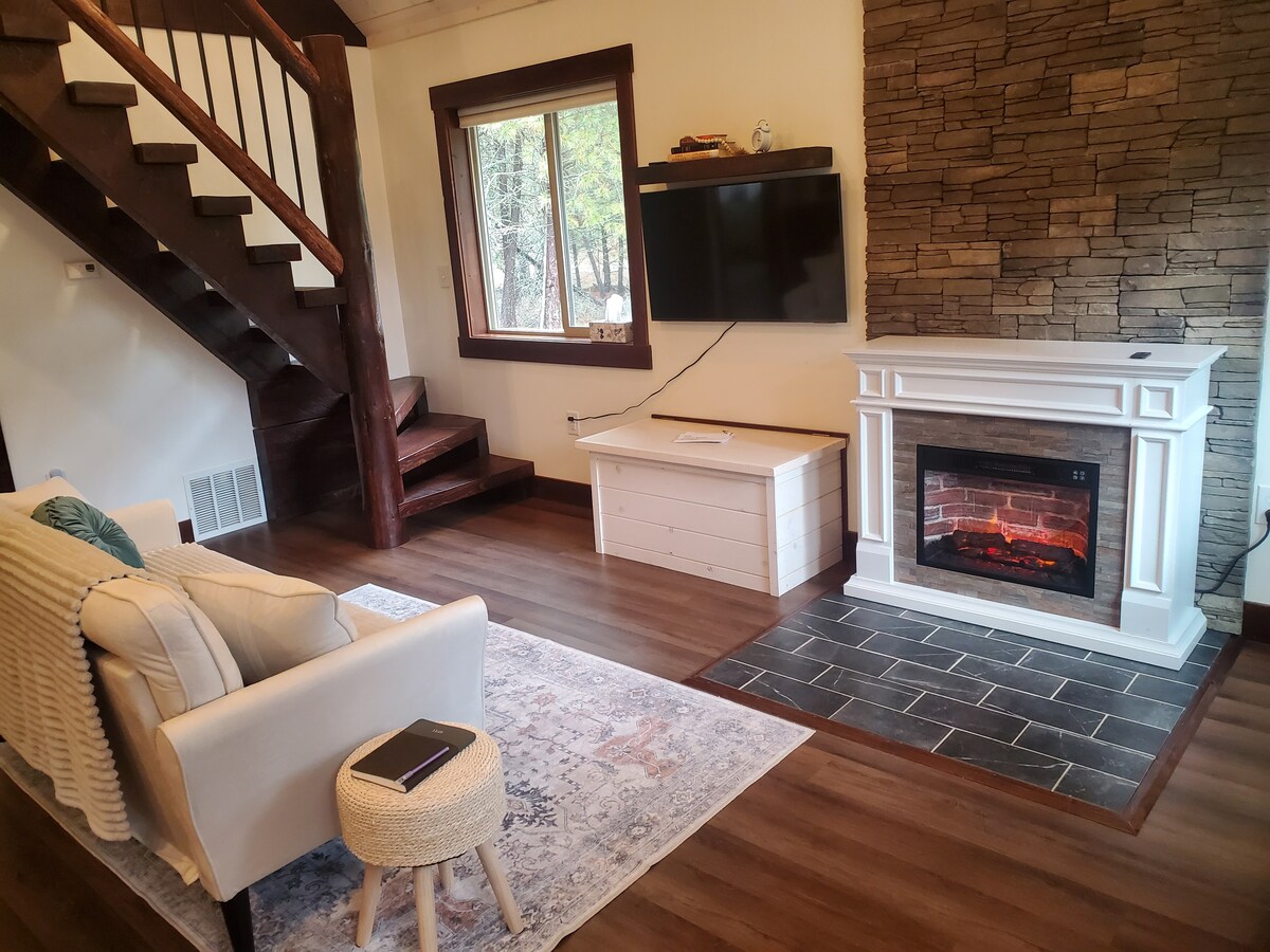 De propiedad y operación local, Stillwater at Stoner Creek Cabins es una de las ocho minicasas modernas idénticas ubicadas en diez acres boscosos justo más allá de un vecindario residencial. Ofrecemos comodidad durante todo el año en un entorno boscoso. El Stillwater se encuentra en la ladera de la propiedad con vistas compartidas a nuestro bosque desde la sala de estar y el patio.